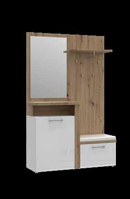 Moderne GARDEROBE, Korpus Artisan Eiche NB, Front weiß Hochglanz Absetzung Hirnholz NB, B/H/T: ca. 191x195x38 cm. B/H/T: ca. 128x201x43 cm.