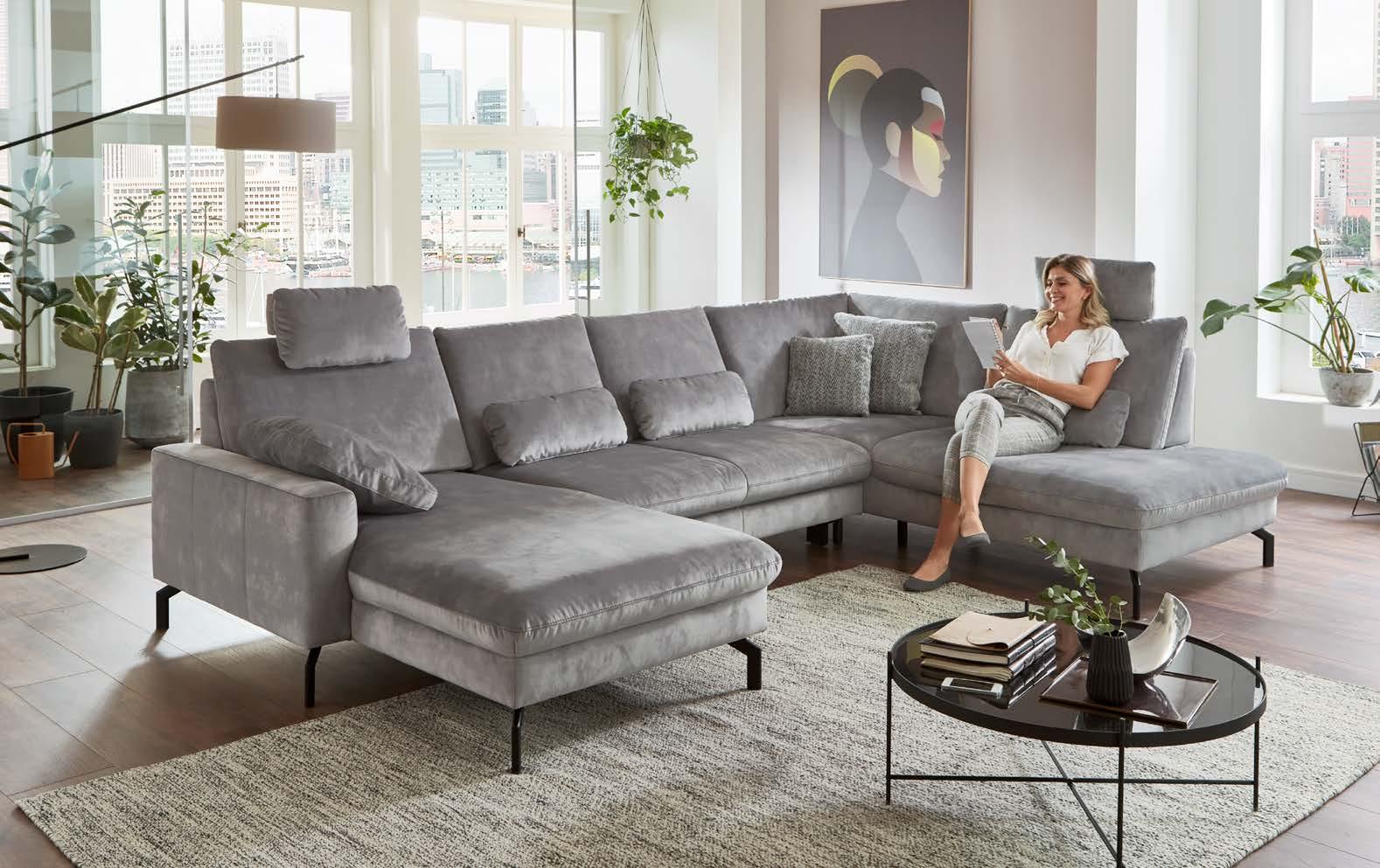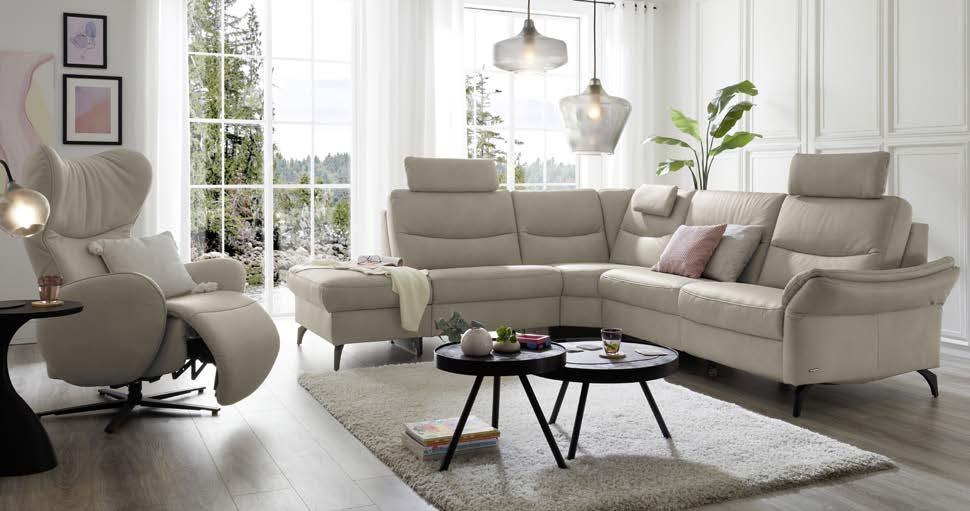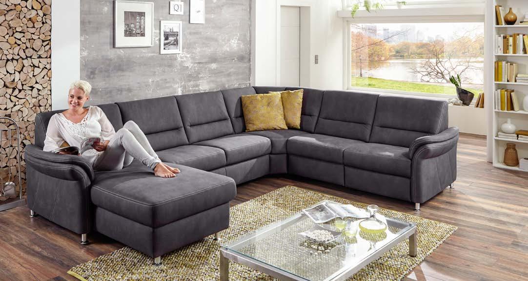 Moderne Optik mit 2 wählbaren Armlehnvarianten Auf Wunsch zusätzlich mit: Stauraum-Funktion und Schlaffunktion