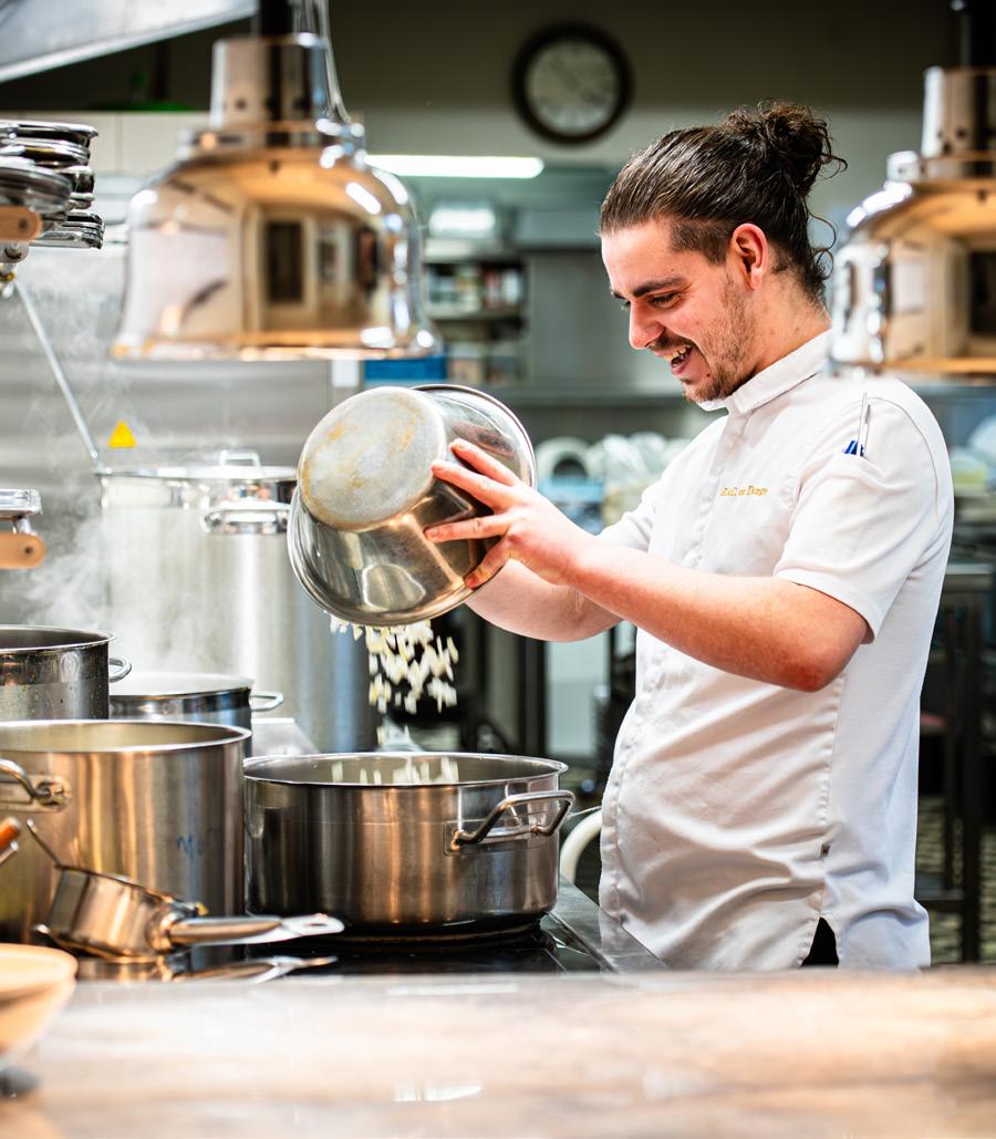 Een gevarieerd aanbod is natuurlijk fantastisch, maar de afstemming op de vraag uit de keuken is elk jaar weer de grootste uitdaging. Want iedereen in de keten moet anders leren denken en werken. Daar waar op scholen en bij collega’s restaurants half-fabrikaten eerder regel dan uitzondering zijn, geldt dat producten uit eigen tuin veel handelingen met zich meebrengen. Uien worden niet gesneden aangeleverd in zakjes, maar zijn vaak klein van formaat