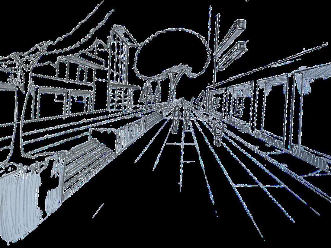 Representing a more complex illusion of depth than a one-point perspective, two-point perspectives are used to depict objects viewed from a corner. The following depicts the metropolitan culture of a highly demanding and populated society with less air to breathe.