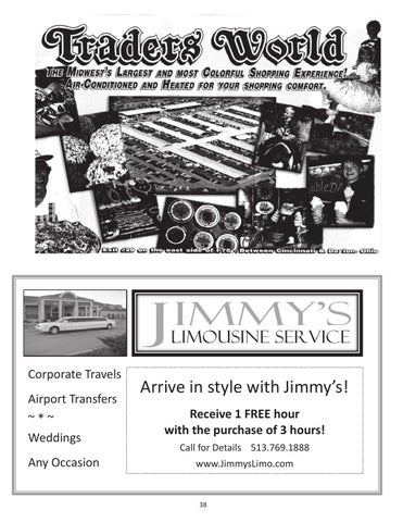 Arrive in style with Jimmy’s! Receive 1 FREE hour with the purchase of 3 hours! Call for Details 513.769.1888 www.JimmysLimo.com