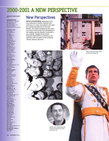 New Perspectives WITH A SUCCESSFUL beginning to the new millennium, Moeller students and staff were in a state of prosperity and open to a positive perspective on the new decade. The school wrapped up the extensive recent construction and remodeling of the building and the Moeller Family felt a new outlook. Student Government President Matt DePetro summed up the optimism with his quote in the yearbook: “Dream, Believe, Become.”