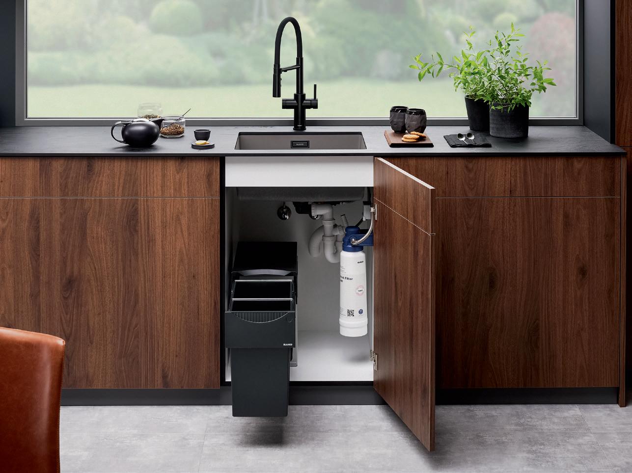 We spend about 60% of our time in the kitchen at the sink. It’s where we fill our glasses, prepare food, rinse dishes, get rid of food waste and separate the recycling. So it‘s important to ensure that things happen efficiently. Having everything you need