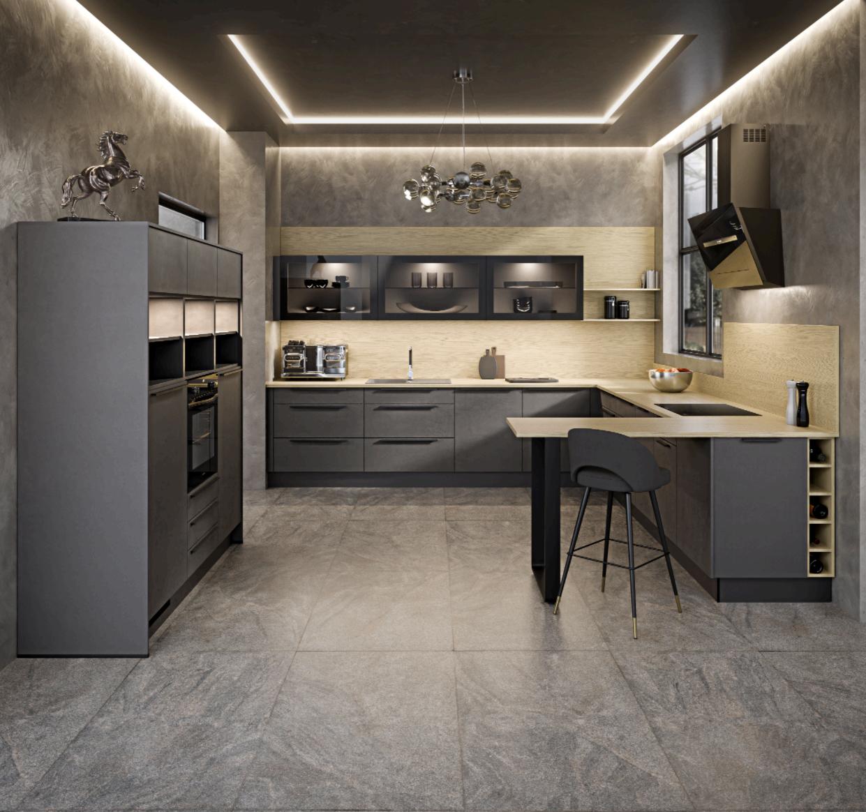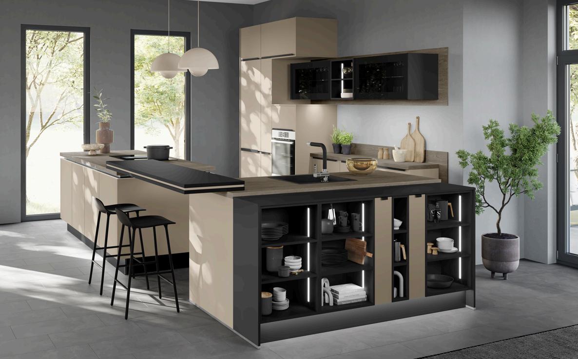 283 284 Schwarz supermatt Cremegrau supermatt Griff Schubkastenausf