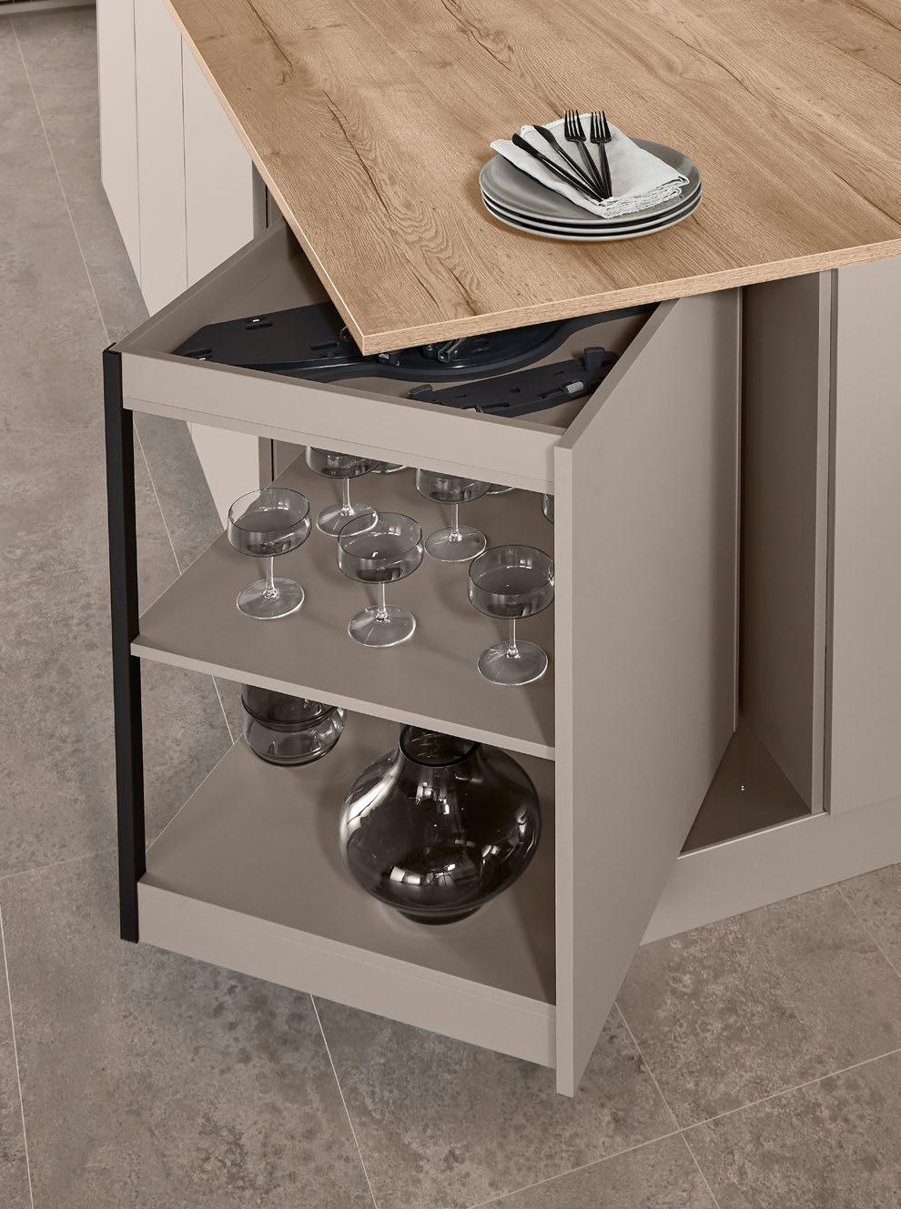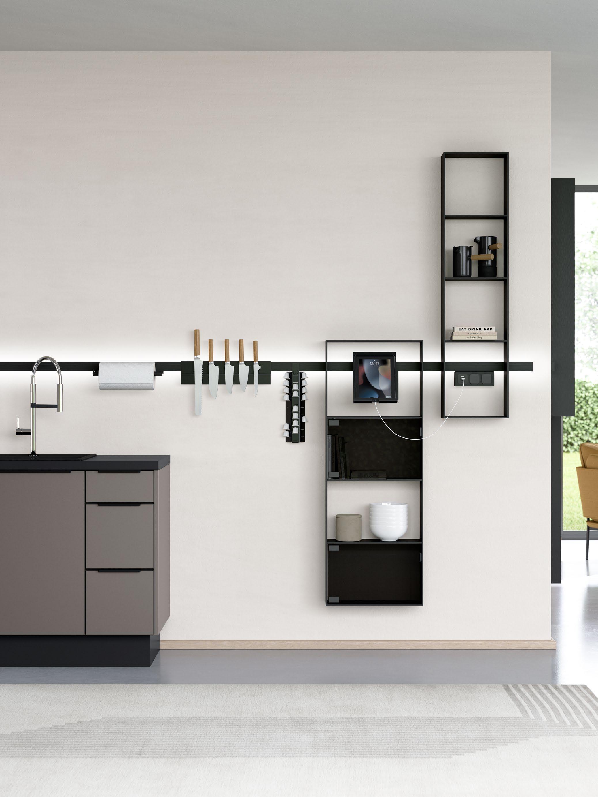 Mit dem Push-to-openSystem bietet die nBOX die perfekte Lösung für grifflose Planungen. With the push-to-open system, the nBOX offers the perfect solution for handleless designs.