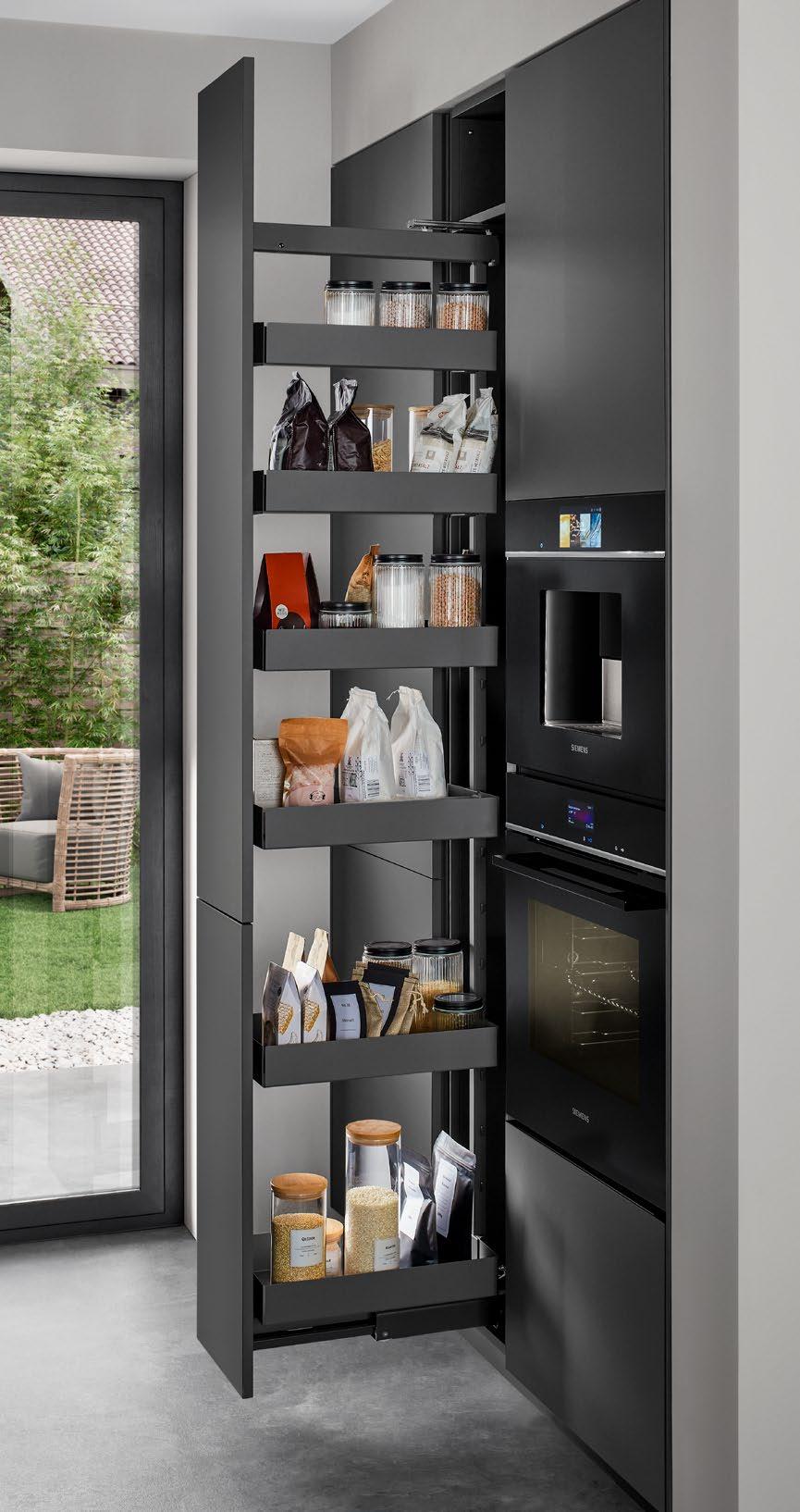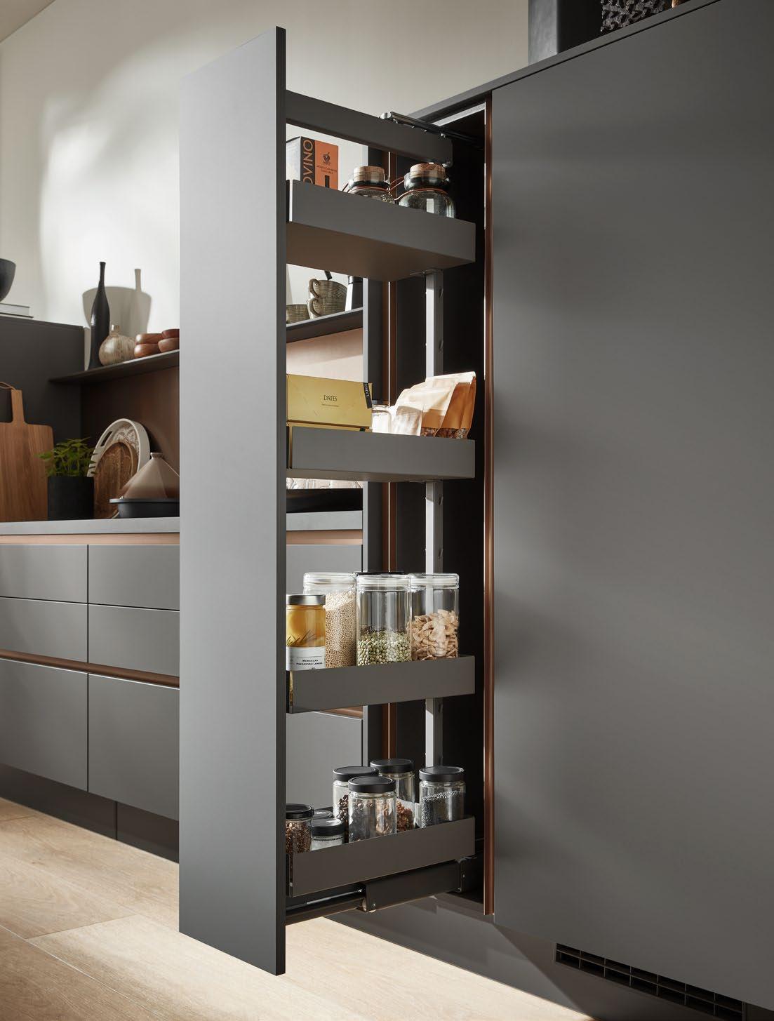 LINE One combines single-track recessed handles with the push-to-open feature for the lower pull-outs.