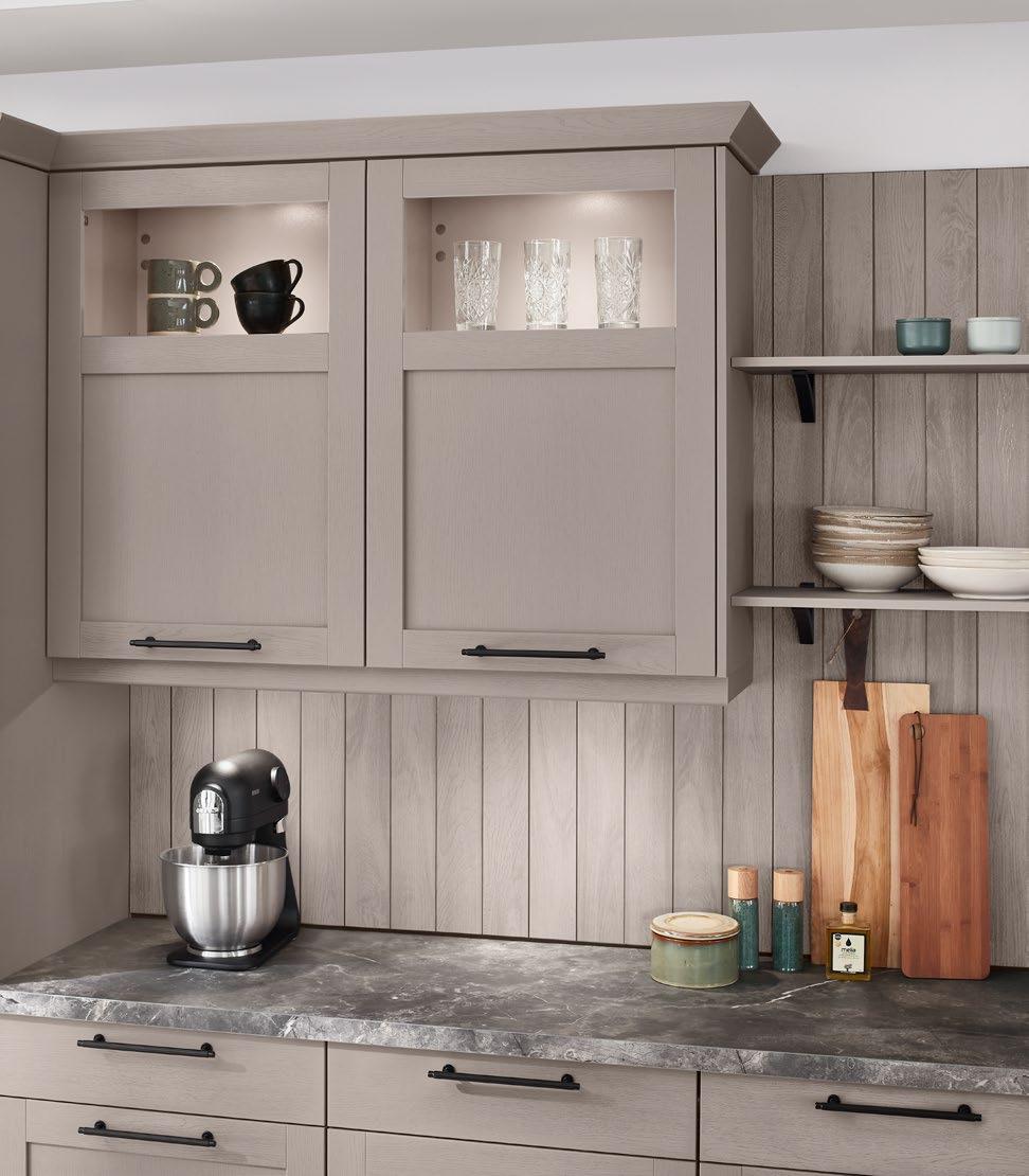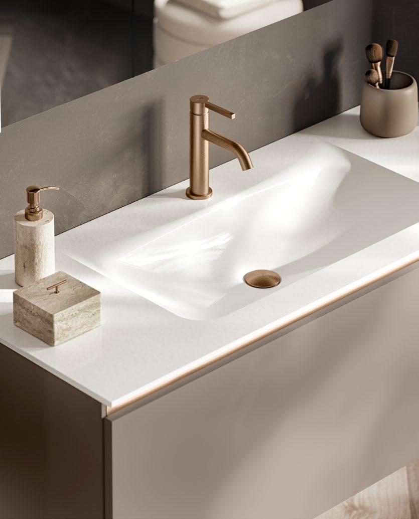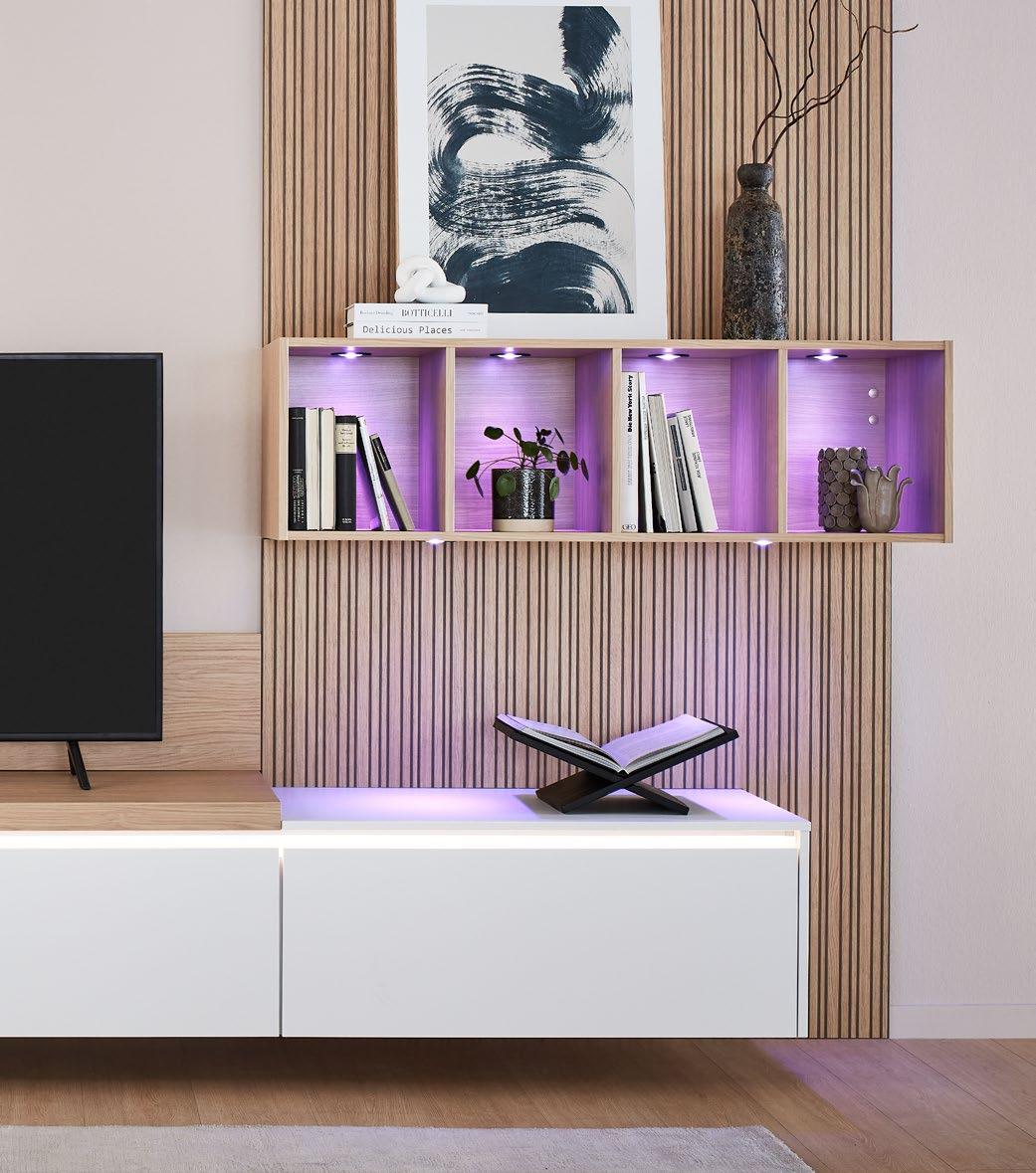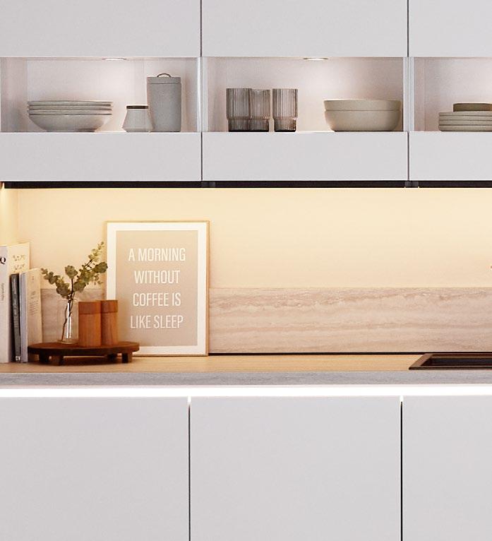 Illuminated double-track recessed handles create a cosy atmosphere.
