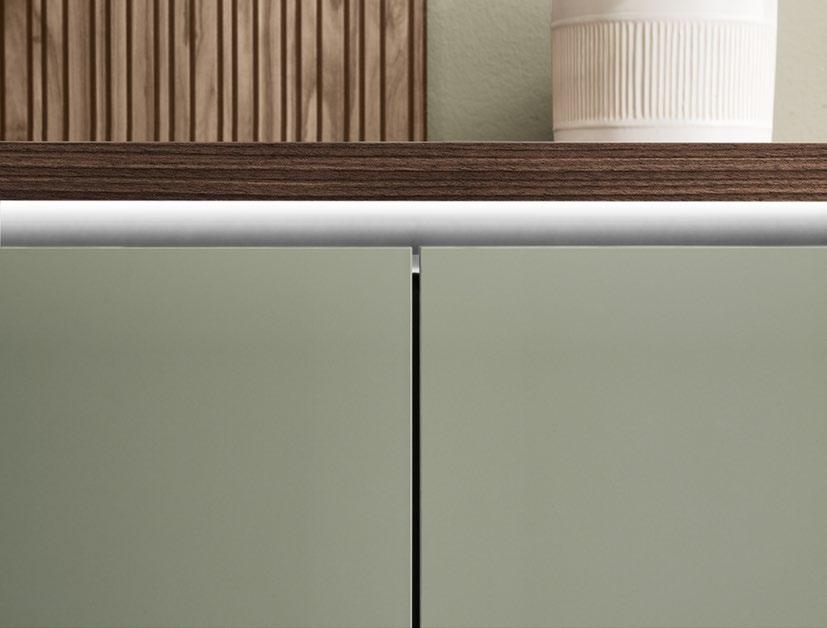 An eye for the unique: vertically illuminated recessed handles set the mood, add accents and emphasise the clean design, transforming light into a design element with genuine appeal.