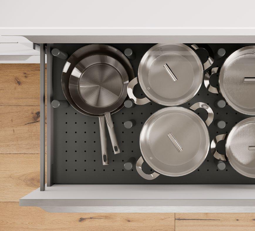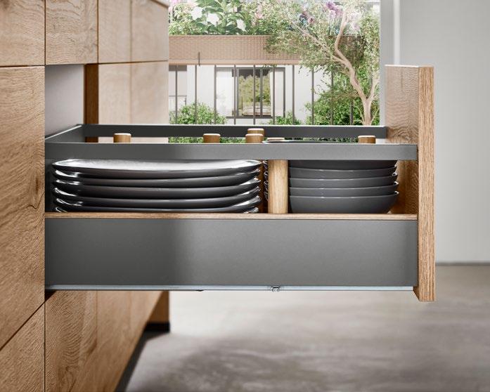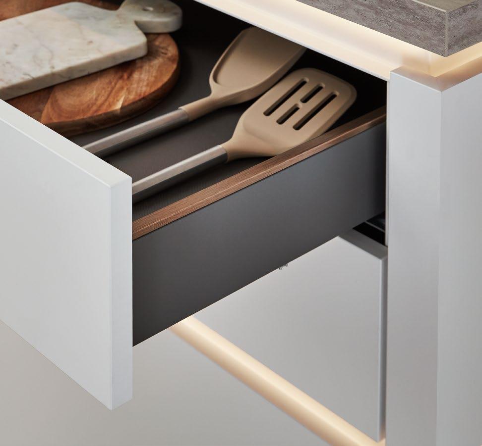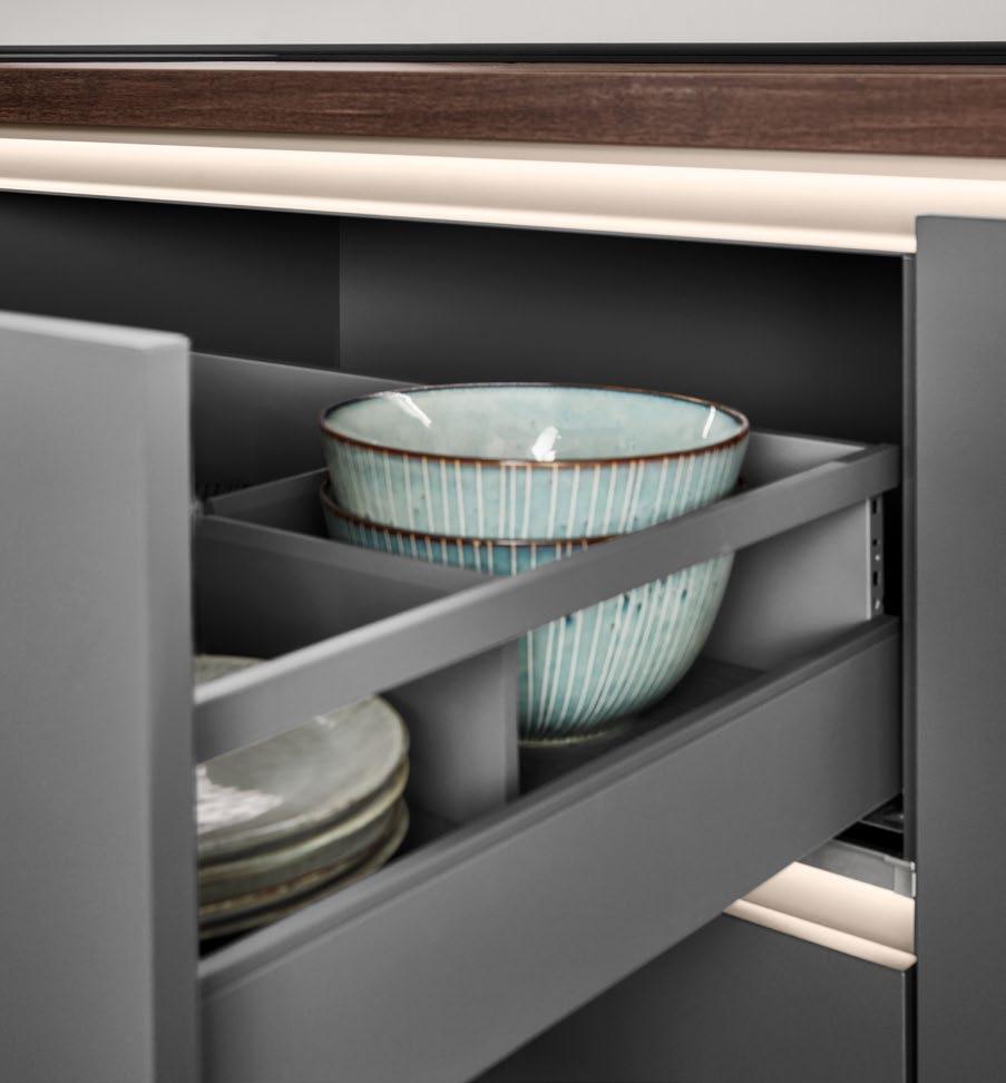 LINE One vereint einspurige Griffmulden mit Push-to-open-Funktion für die unteren Auszüge.