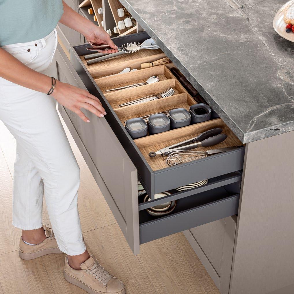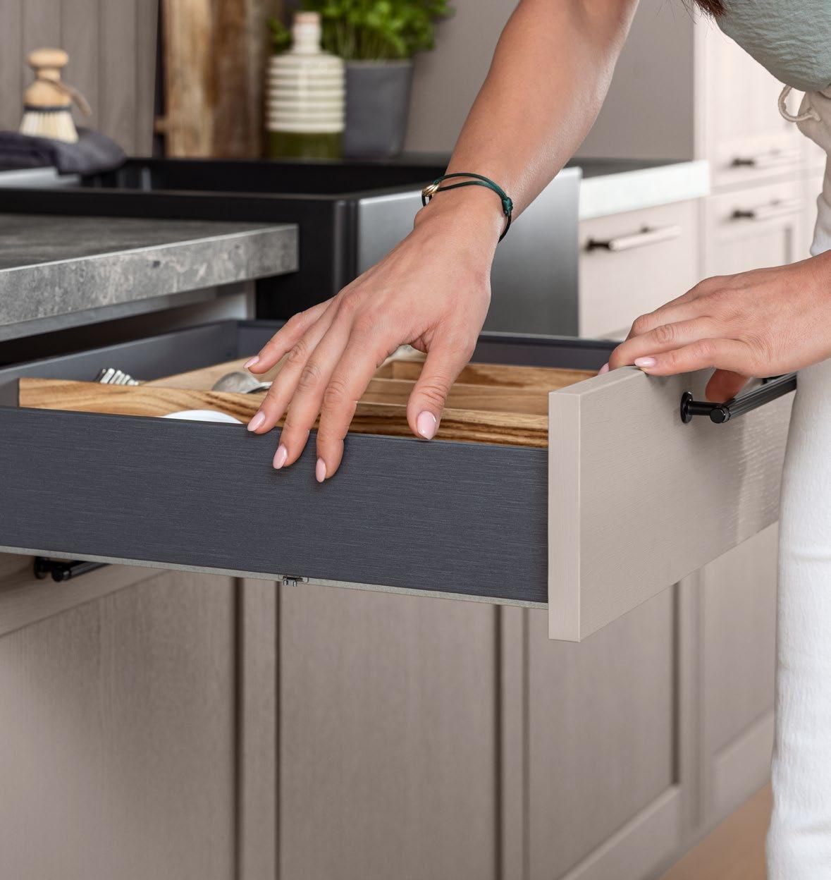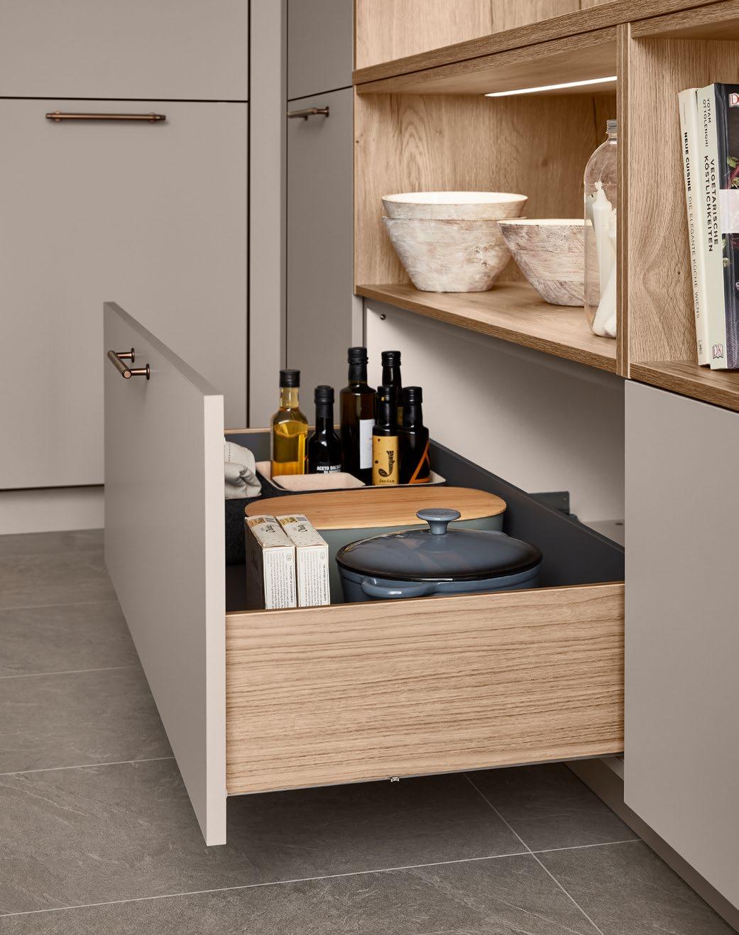 LINE One vereint einspurige Griffmulden mit Push-to-open-Funktion für die unteren Auszüge.