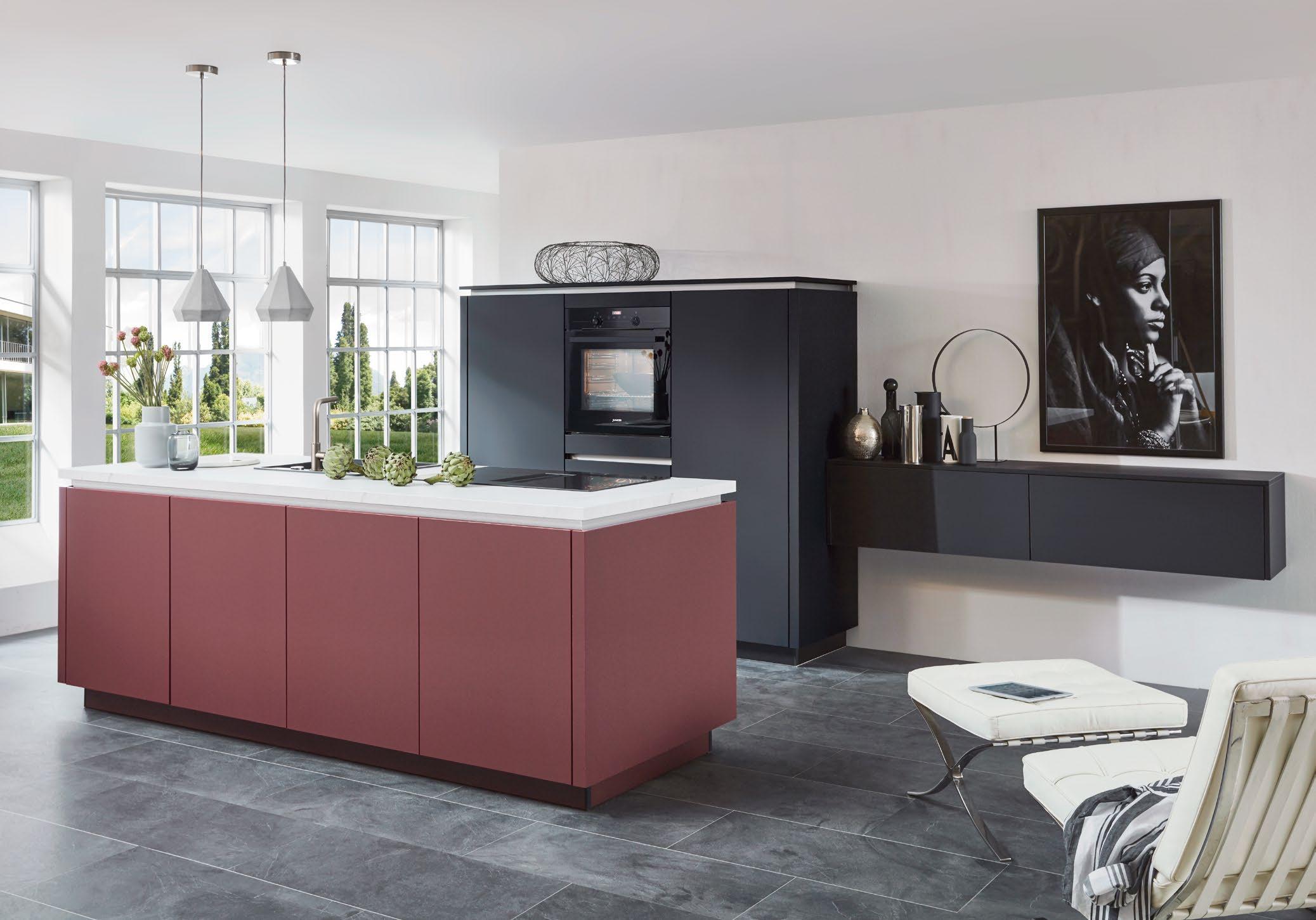 Auf ganzer Linie eine besonders individuelle Gestaltung: Grifflose Küchen verbinden modernes Design mit Funktionalität. Ganz gleich, ob Ton-in-Ton oder als gezielter Akzent – LINE N eröffnet mit elf Griffprofilfarben vielfältige Optionen für einen ganz persönlichen Einrichtungsstil.