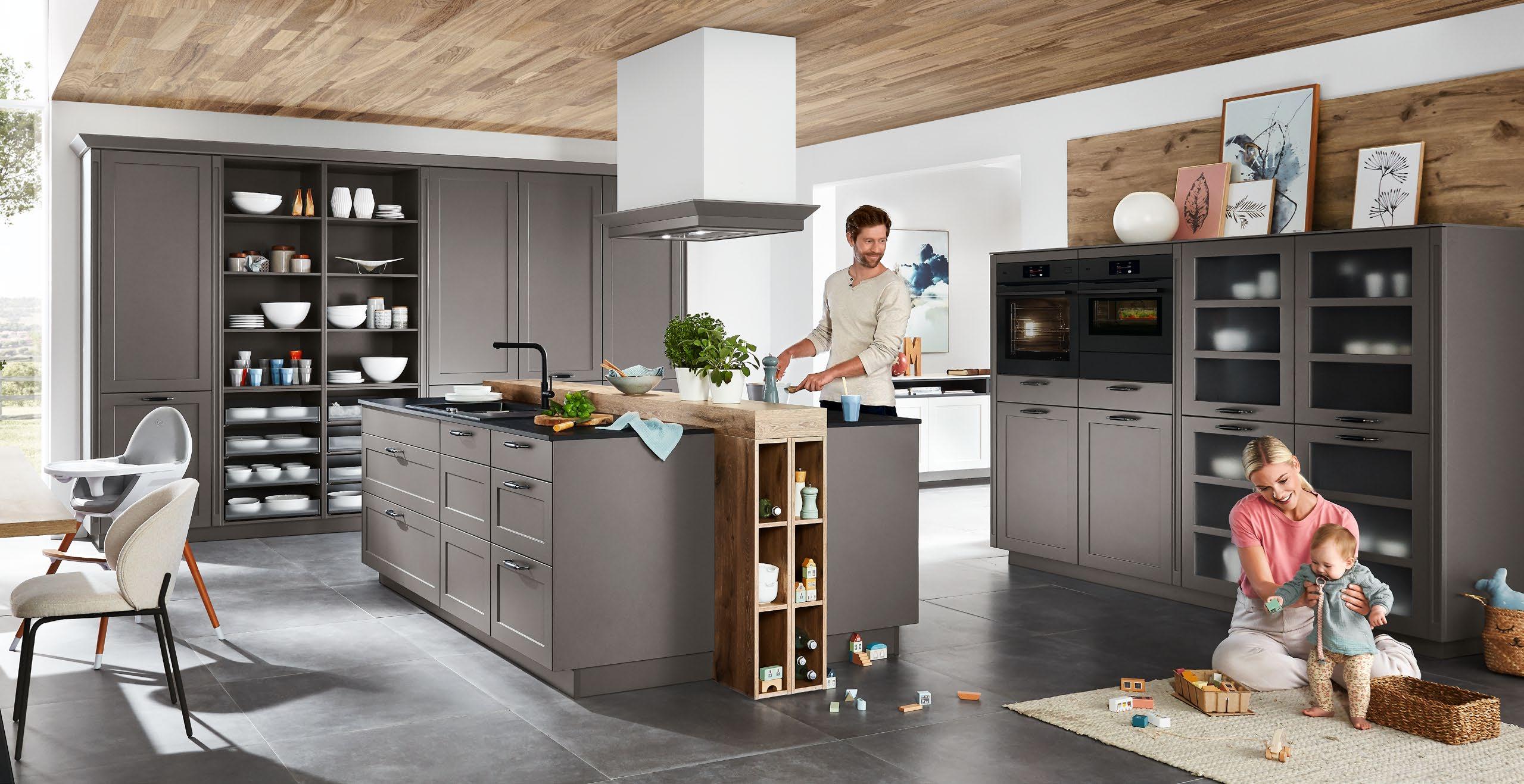 Hier verbringen wir Zeit miteinander, teilen Momente voller Genuss und genießen die Augenblicke, die den Küchenalltag besonders machen. Wir starten mit einem gemeinsamen Frühstück in den Tag, lachen und schmieden Pläne am Familientisch, plaudern beim Kochen, feiern Küchenpartys bis tief in die Nacht und schaffen bleibende Erinnerungen. Denn eine Küche ist weit mehr als nur ein funktionaler Raum. Sie ist Treffpunkt, Hobbyraum und Partyzone zugleich. So wird sie zum zentralen Lebensraum und damit der Mittelpunkt in unserem Zuhause. Lassen Sie sich inspirieren und gestalten Sie Ihre Küche ganz individuell. Entdecken Sie die vielen Möglichkeiten, die zu Ihren Bedürfnissen, Ihren täglichen Routinen und Ihrem persönlichen Stil passen.