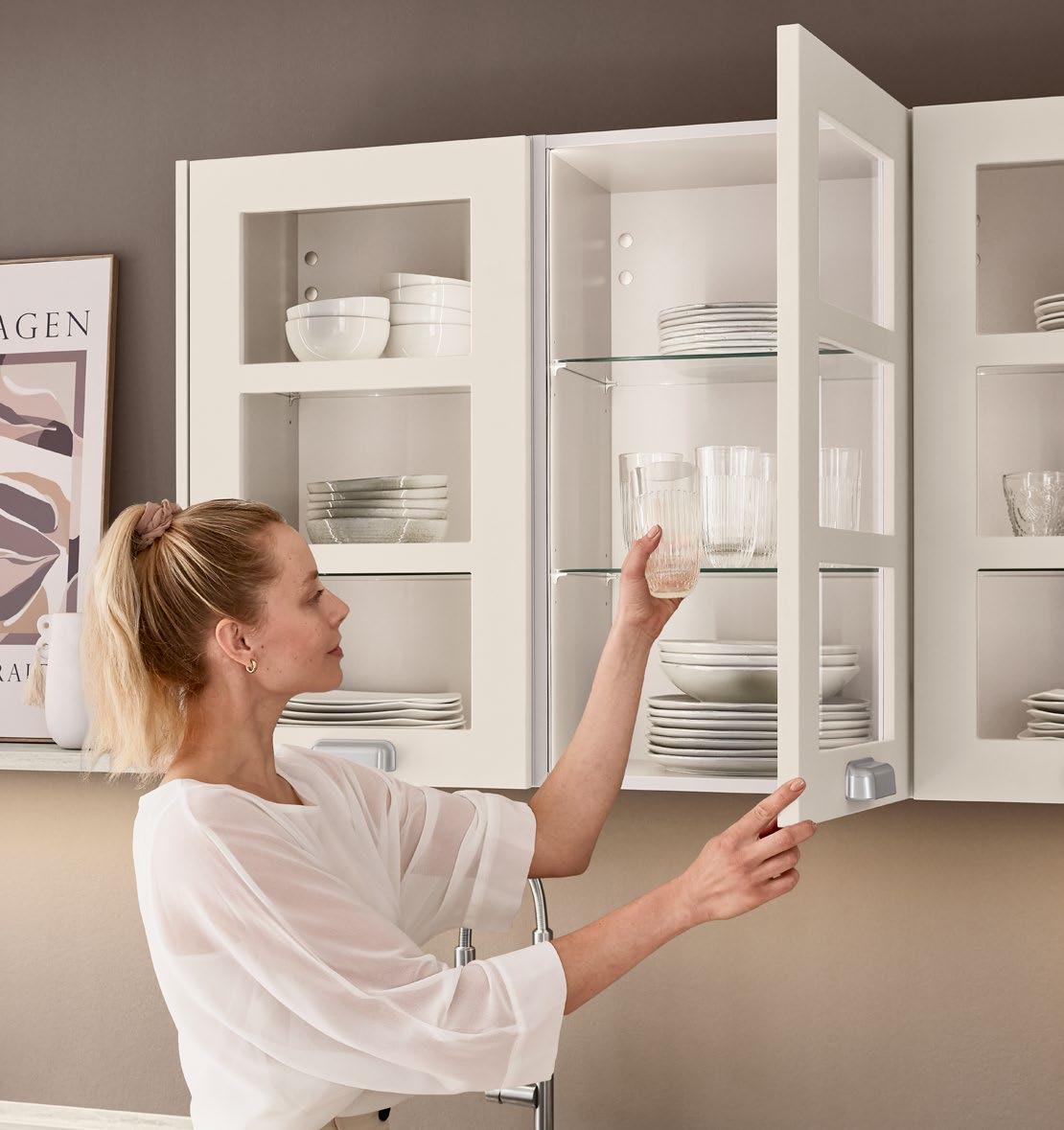 Die Vitrinen Air mit filigranem Alurahmen kommen ohne sichtbare Scharniere aus und unterstreichen den puristischen Look der Küchengestaltung. Ein Statement und Blickfang für alle, die außergewöhnliches Design schätzen.