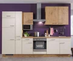 KUHINJSKI BLOK „NOAH“, leseni del, korpus, fronte in podnožje: bela barva, poudarki in delovna plošča: imitacija hrasta artisan, dolžina: ca. 260 cm, bela tehnika in dodatki so na voljo proti doplačilu 599,- (12790184/01)