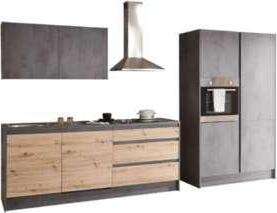 KUHINJSKI BLOK „TROJA“, leseni del, korpus, poudarki, delovna plošča in podnožje: antracitna barva, fronte: imitacija hrasta artisan, dolžina: ca. 210 cm, bela tehnika in dodatki so na voljo proti doplačilu 690,-