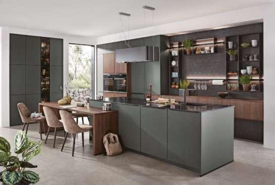 1 KUHINJSKI BLOK „BASE/WIN“, korpus, delovna plošča, poudarki in podnožje: antracitna barva, fronte: videz svetlega betona, vklj. 4-delni set bele tehnike: pečica Dalbach (energijski rezred: A), steklokeramično kuhališče Dalbach, napa Airforce (energijski razred: D) in pomivalni stroj Ignis (energijski rezred: ), s pomivalnim koritom, dolžina: ca. 205 cm, dodatna bela tehnoka, dodatki in dodatni elementi so na voljo proti doplačilu 1.799,- (18710942/01-02)