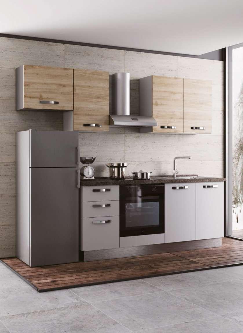 2 KUHINJSKI BLOK „STAR“, korpus, fronte in podnožje: svetlo siva barva, poudarki: imitacija hrasta rovere kadiz, delovna plošča: rjava barva, vklj. 4-delni set bele tehnike: pečica Beko (energijski razred: A), steklokeramično kuhališče Beko, napa (energijski razred: G) in haldilnik z zamrzovalnim predalom (energijski razred: ), s pomivalnim koritom ter sistemom za tiho in mehko zapiranje, dolžina: ca. 255 cm, dodatki so na voljo proti doplačilu 1.299,- (28920004/02)