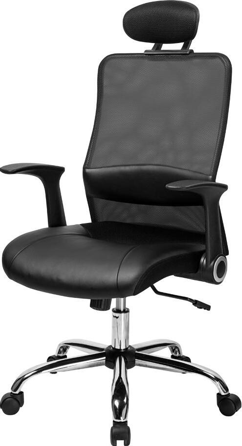6 PISARNIŠKI STOL „GENO“, sedišče: videz usnja v črni barvi, naslon: mrežasta tkanina v črni barvi, nastavljiva višina, z zložljivima rokonaslonoma in oporo za glavo, maks. obremenitev: do 120 kg, Š/V/G: ca. 64/112-120/64 cm 89,90 (28820081/01)