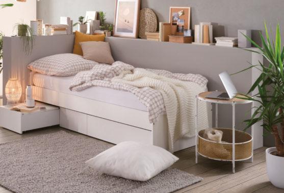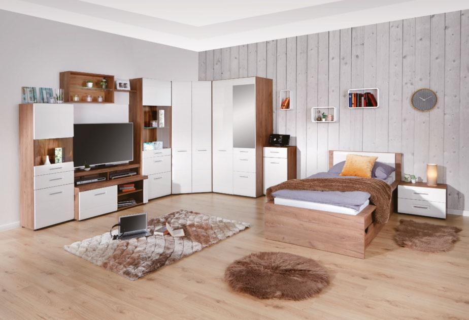 4 PROGRAM MLADINSKIH SOB „AVENSIS NEW“ s korpusom v imitaciji hrasta kraft in frontami v beli barvi visokega sijaja. Program odlikuje sistem za tiho in mehko zapiranje. POSTELJA, 2 predala, površina ležišča: ca. 140/200 cm, brez posteljnega dna, vzmetnice, posteljine in dekoracije 389,- NOČNA OMARICA, 2 predala, Š/V/G: ca. 56/40,5/37 cm 99,90 OMARA, 2 x vrata, poudarek: zrcalno steklo, 2 predala, 3 police, Š/V/G: ca. 90/206/60 cm 489,- (18030378/01,03,05)