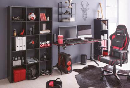 12 RAČUNALNIŠKA MIZA „DX RACER“, mizna plošča: antracitna barva, ogrodje: prašno lakirano železo v črni barvi, nastavljiva višina, z držalom za pijačo, držalom za slušalke in veliko podlogo za miško, Š/V/G: ca. 160/70-80/75 cm 199,- (05750173/01)