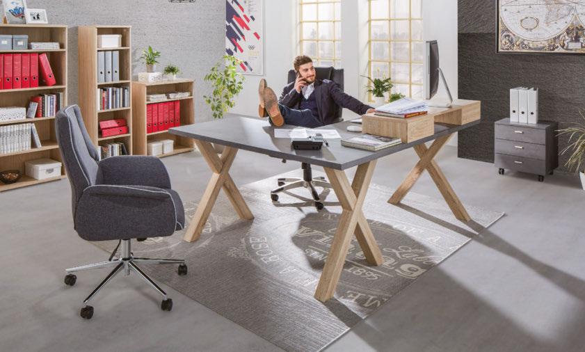 10 PISALNA MIZA „SCHEMA“, imitacija hrasta artisan, Š/V/G: ca. 180/74/69 cm 159,- (25930015/04) PISARNIŠKI STOL „SURF“, kombinacija videza usnja in mrežaste tkanine v črni barvi, kromirano ogrodje, nastavljiva višina, maks. obremenitev: do 100 kg, Š/V/G: ca. 42/88-98/59 cm 49,- (29260012/02)
