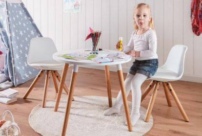 6 OTROŠKI STOLČEK „CHILD“, sedišče: videz usnja v beli ali črni barvi, nogice: naoljeni les masivnega hrasta, maks. obremenitev: do 60 kg, Š/V/G: ca. 39/57/40 cm 29,90 OTROŠKA MIZICA, mizna plošča: lak v beli barvi, nogice: naoljeni les masivnega hrasta, Š/V/G: ca. 60/51/60 cm 49,90 (23810107/01-03)
