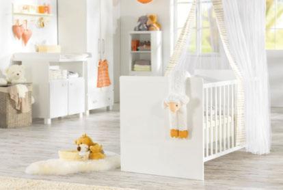 8 OTROŠKA POSTELJICA „FOX & BUNNY“, les, lakiran v beli barvi, z vzmetnico, s 3 odstranljivimi letvicami in 4 kolesci, vklj. 4-delni set dodatkov: posteljnina, gnezdece, baldahin in palica za baldahin, omogoča predelavo v posteljico za malčke, maks. obremenitev: do 35 kg, površina ležišča: ca. 70/140 cm 299,- (42040244/01)