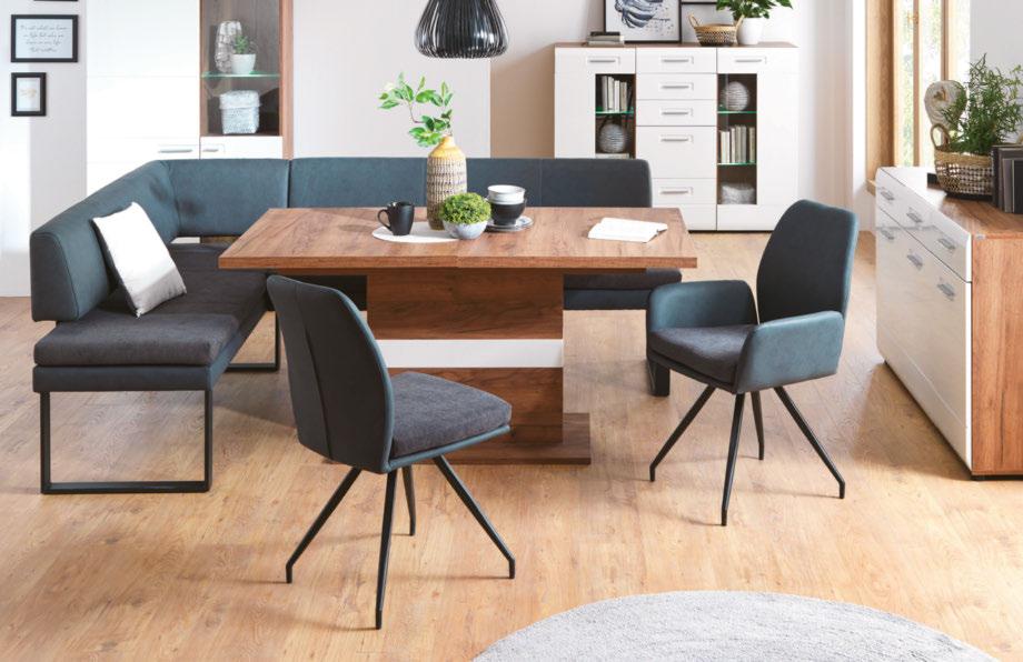 6 JEDILNA MIZA „VECTOR“, masivni les akacije, ogrodje: prašno lakirano železo v črni barvi, Š/V/G: ca. 180/76/90 cm 399,- (16090043/01) DIZAJNERSKI STOL „NADJA“, žamet v bež in svetlo modri barvi, podnožje: prašno lakirano lito železo v črni barvi, sedišče je vrtljivo za 360°, maks. obremenitev: do 140 kg, Š/V/G: ca. 62/83/63 cm 89,90 (16340127/01-02)