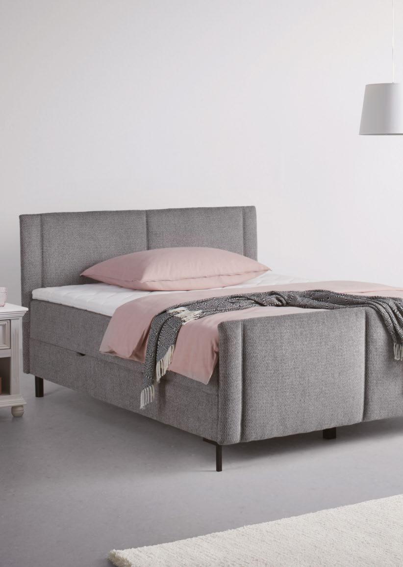 11 OBLAZINJENA POSTELJA „AMALFI“, tkanina v sivi barvi, ohišje box: jedro iz vzmeti Bonell, vzmetnica: jedro iz žepkastih vzmeti, trdota: trdo (H3), nadvložek: jedro iz hladne pene, snemljiva in pralna prevleka nadvložka (ročno pranje), s predalom za shranjevanje posteljnine, površina ležišča: ca. 180/200 cm, izbira blaga proti doplačilu, brez posteljnine in dekoracije 999,(02980142/01)