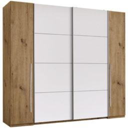5 OMARA Z DRSNIMI VRATI „JOKER“, korpus in poudarki: imitacija hrasta artisan, fronte: bela barva, 2 x drsna in 2 x klasična vrata, 2 droga za obešanje oblačil, 10 polic, Š/V/G: ca. 267/226/61 cm 599,- (25220276/04)