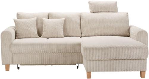 2 FUNKCIJSKA SEDEŽNA GARNITURA „LILLE“, rebrasti žamet v bež barvi, nogice: les v naravni barvi, valovito vzmetenje Nosag, obdelano hrbtišče, s posteljno funkcijo, predalom za shranjevanje posteljnine in z 2 okrasnima blazinama, podaljšani del se lahko namesti na levo ali desno stran, površina ležišča: ca. 196/120 cm, mere kraka: ca. 232/156 cm, izbira blaga proti doplačilu 799,NASLON ZA GLAVO, Š/V/G: ca. 58/23/10 cm 24,90 (27030083/01-02)