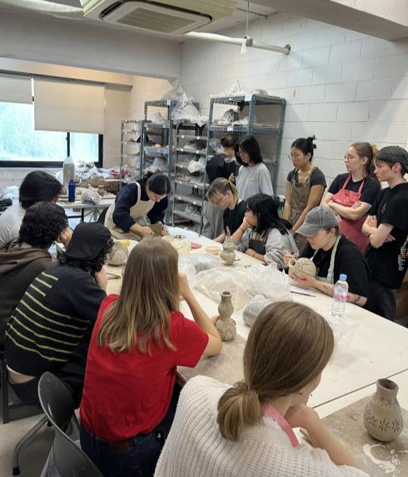 最後,Korean Ceramics 課程則讓我認識到技術與文化的結合。老師不僅講解了韓國傳統陶 土的歷史與文化背景,也會示範如何製作傳統韓式瓷器。在製作過程中,我發現自己常常因 為急於成形而忽略了泥土在不同濕度下的變化,導致作品出現裂縫或變形,甚至是崩塌。這