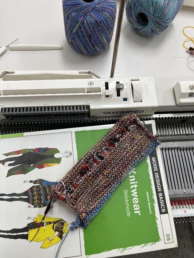 幾乎沒有人具備針織機的操作經驗。經與教授討論後,老師鼓勵我嘗試使用這台針織機,並 以針織布料的形式作為展出方向。