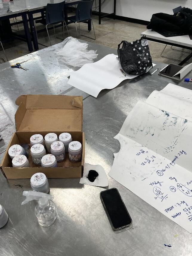 《Art and the city》這門課讓我從嶄新的角度理解首爾這座城市的樣貌,也重新思考城市與 藝術之間的關係。課堂中淺談韓國戰後的都市重建與現代主義建築,帶我們探索歷史與現實 交織的城市。兩次 Workshop 中,我們以紙張為起點,分別嘗試跳脫慣性思維與不斷堆疊實 驗,感受媒材與個人表現方式之間無限的可能性。老師分享了多位以炭筆創作的藝術家,也 不斷鼓勵我們 Don’t try to be safe。此外,兩次校外教學分別前往阿峴站與乙支路印刷 街,印象最深的是參訪插畫家 RobinPie 的工作室,聽他分享現今韓國獨立出版者如何在快 速變動的城市中維持創作與印刷產業之間的共存,也實地走訪了販售特殊紙材的紙行 (인더페이퍼),親手觸摸不同質感的紙張。
