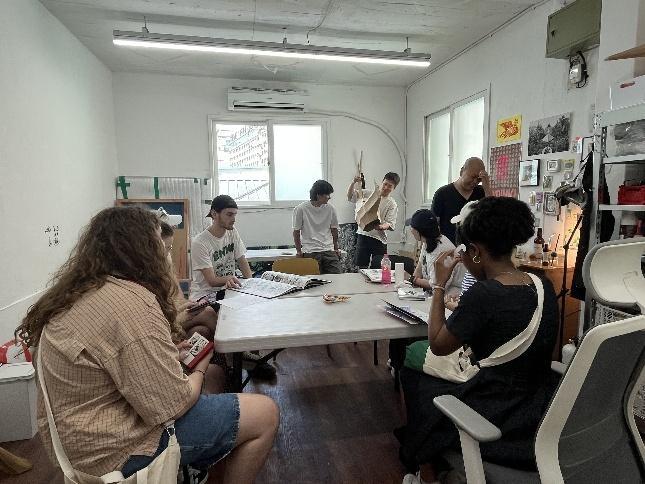 在乙支路印刷街的校外教學中,我們參觀了插畫家 RobinPie 的工作室。他分享了自己的創作經歷,以 及獨立出版創作者如何與印刷街找到平衡,實現互 利共存的方式。