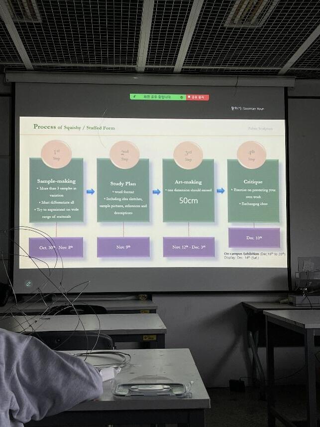 進入寒假後,回顧在梨花女子大學的這段學習時光,雖然受限於語言因素,無法完全投入纖 維藝術或時尚設計系所開設的專業課程,但得益於梨花自由彈性的選課制度,仍然能夠在藝 術與設計學院內選修不同藝術領域的課程。