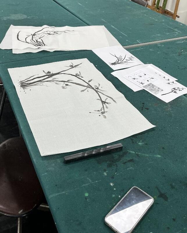 花了一整節課練習後的菊花水墨畫。
