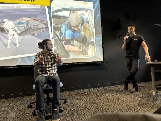 在演講課時動畫師 Vincenzo 講述邀請同學上台 練習,他向我們講解該如何引導動捕演員自然的 呈現表演。