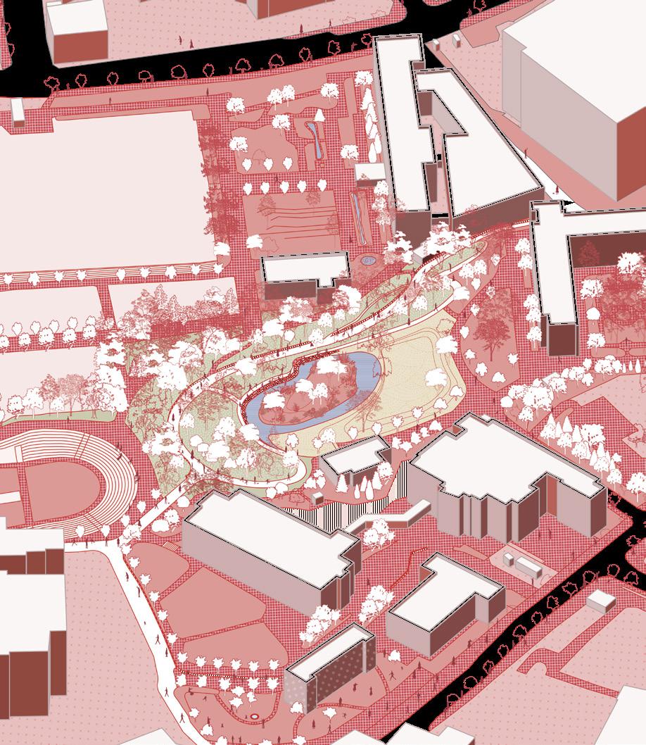 대상지의 주요 구성요소인 플라타너스와 학생들 사이의 관계를 재정의하는 설계가 진행되었다.