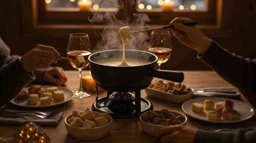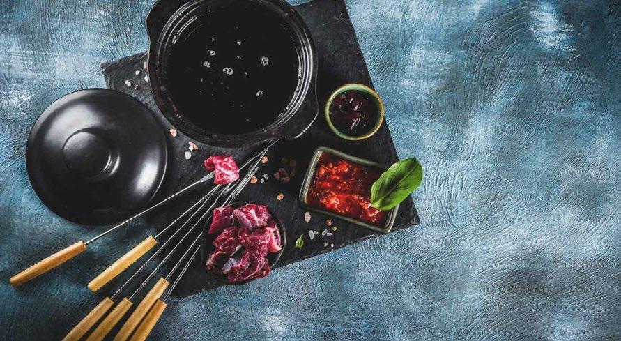 Wenn die Tage kürzer werden, es draussen frostig ist und drinnen Kerzenlicht und Cheminéefeuer wärmen, beginnt die Zeit für einen grossen Klassiker der Schweizer Winterküche: Fondue chinoise. Ein kräftiges Fleischfondue entfaltet seinen vollen Genuss, wenn es von einem Rotwein mit Struktur und dunkler Frucht begleitet wird. Genau hier zeigt sich der Tempranillo Garmón als charmanter Partner – kraftvoll und elegant zugleich, mit intensiver Fruchtfülle, die harmonisch zum Essen passt und die Wärme der Ribera del Duero eindrucksvoll ins Glas bringt. 28 — RIBERA DEL