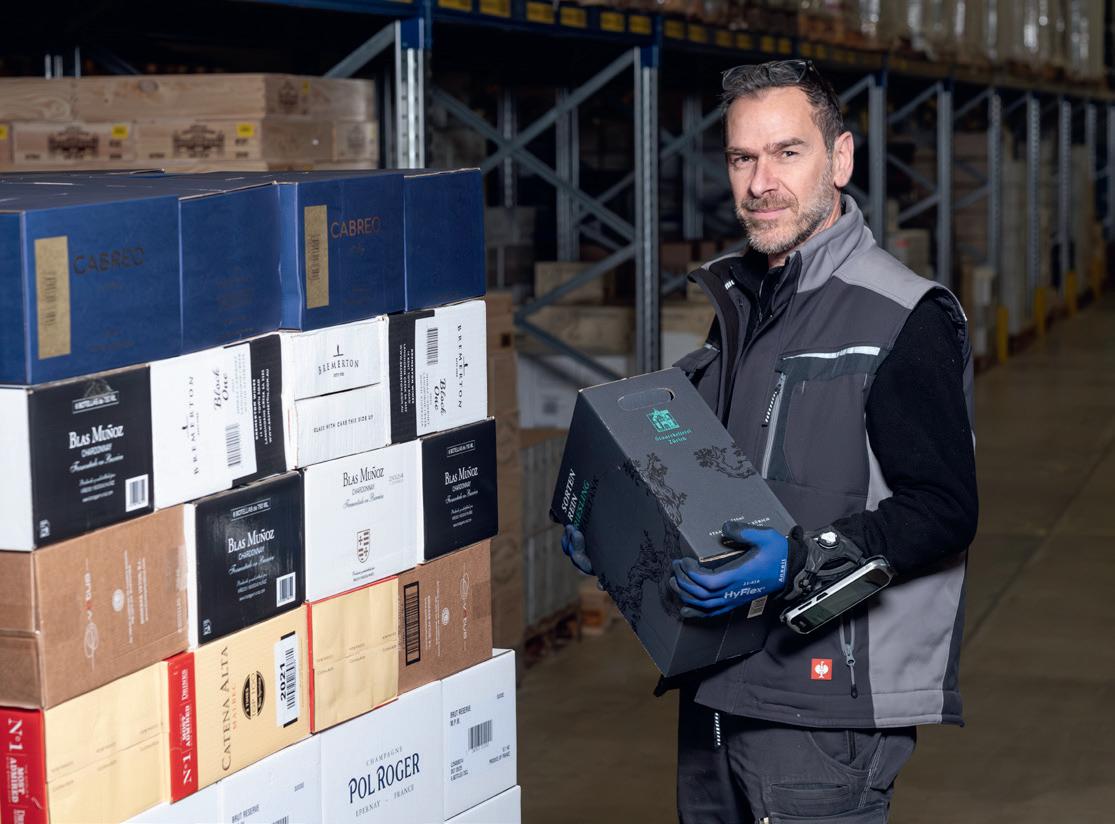Julien Gibey und David Cuminal bereiten die Lieferung an eine Mövenpick Wein Filiale vor.