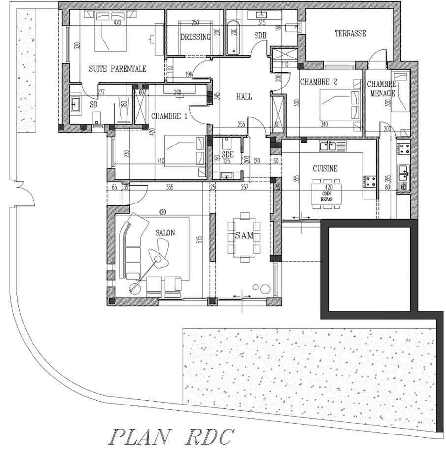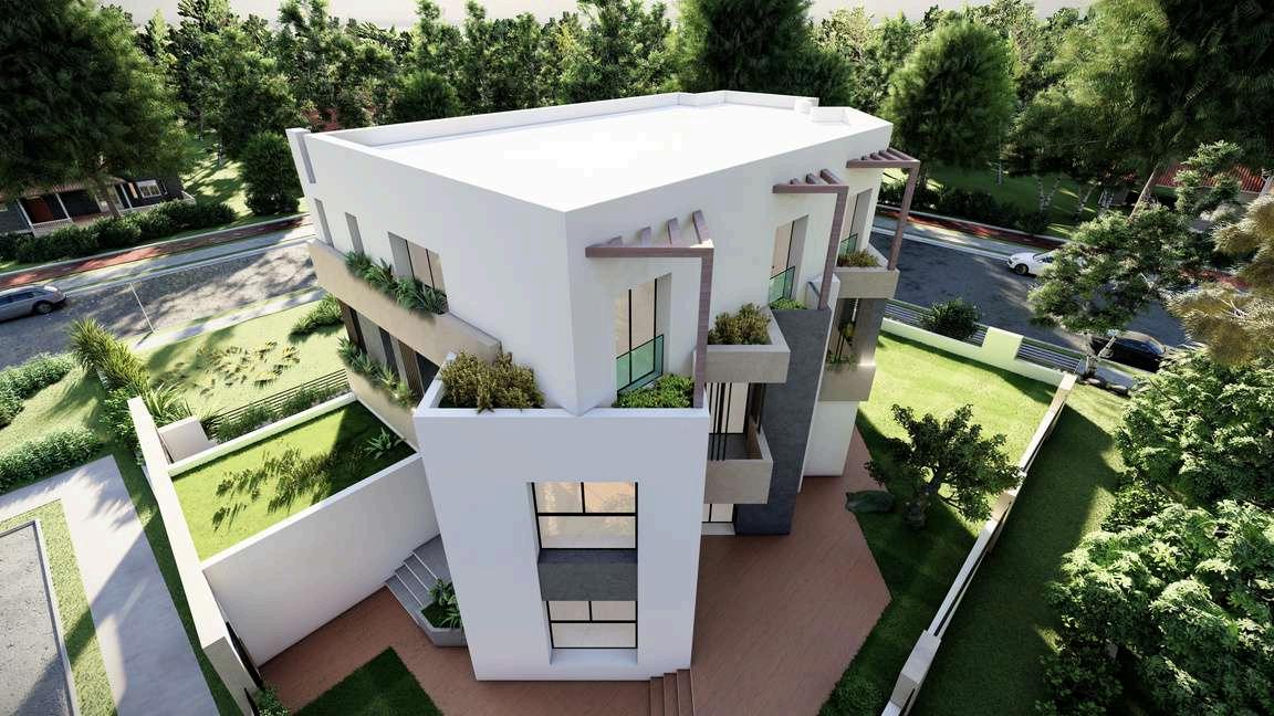 Il s 'agit d'assurer une extension d'une villa. Notre mission consiste a surélever la maison d’un étage et de concevoir des niveaux indépendants consacrés aux logements. deux variantes seront présentées: une variante avec un retrait et une couverture en pergola au dernier niveau et une deuxième variante sans retrait.