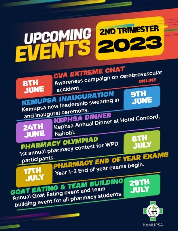 The organizing committee of kemupsa is a professional student organization domiciled within Kenya Methodist University.Made up of a consortium of 8 members it is unique in it's kind being at the helm of all kemupsa activities However the real strength of the committee lies in how well it fulfills it major mandate to nature the professional development of pharmacy students and even beyond it's confines to bring changes even at the community at large Without a comprehensive list of impacting activities the organization would be just a paper tiger In this understanding the organization has embarked on a series of events this year But most of these activities are what I would term regular among many professional bodies but what brings out the difference is that the organizing committee is a towering giant in it's realm of all committees within kemupsa and with that comes giant responsibilities that would cement it's pole position in the field Being the month of June CVA awareness will be our starting event in office and I am optimistic that we will bring a paradigm shift in matters pertinent to CVA