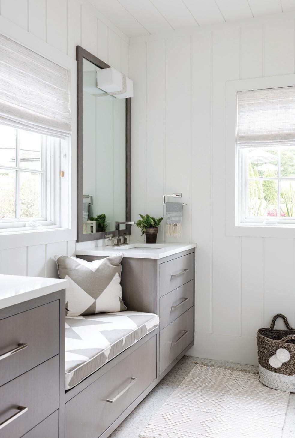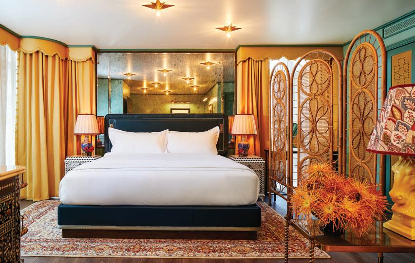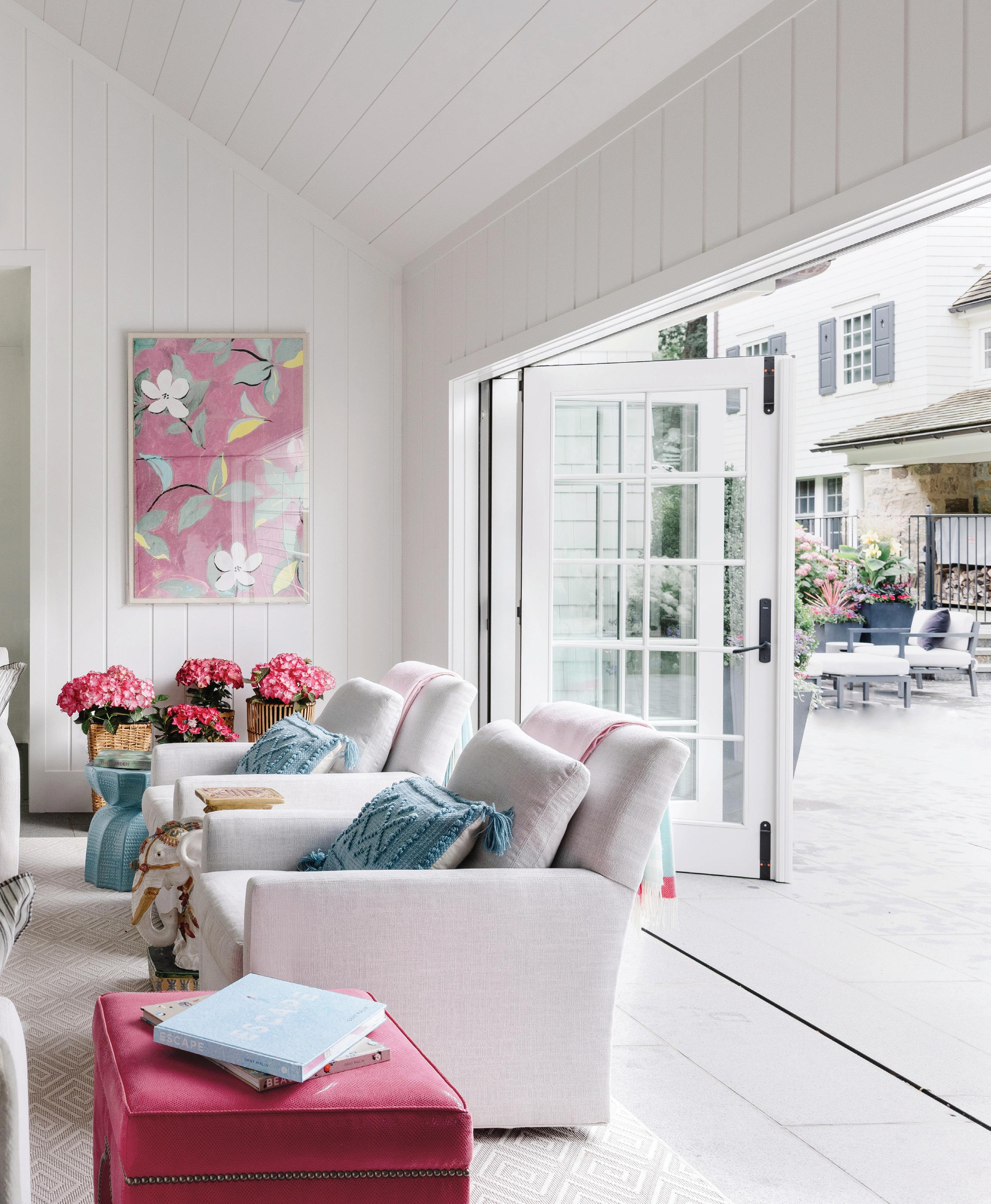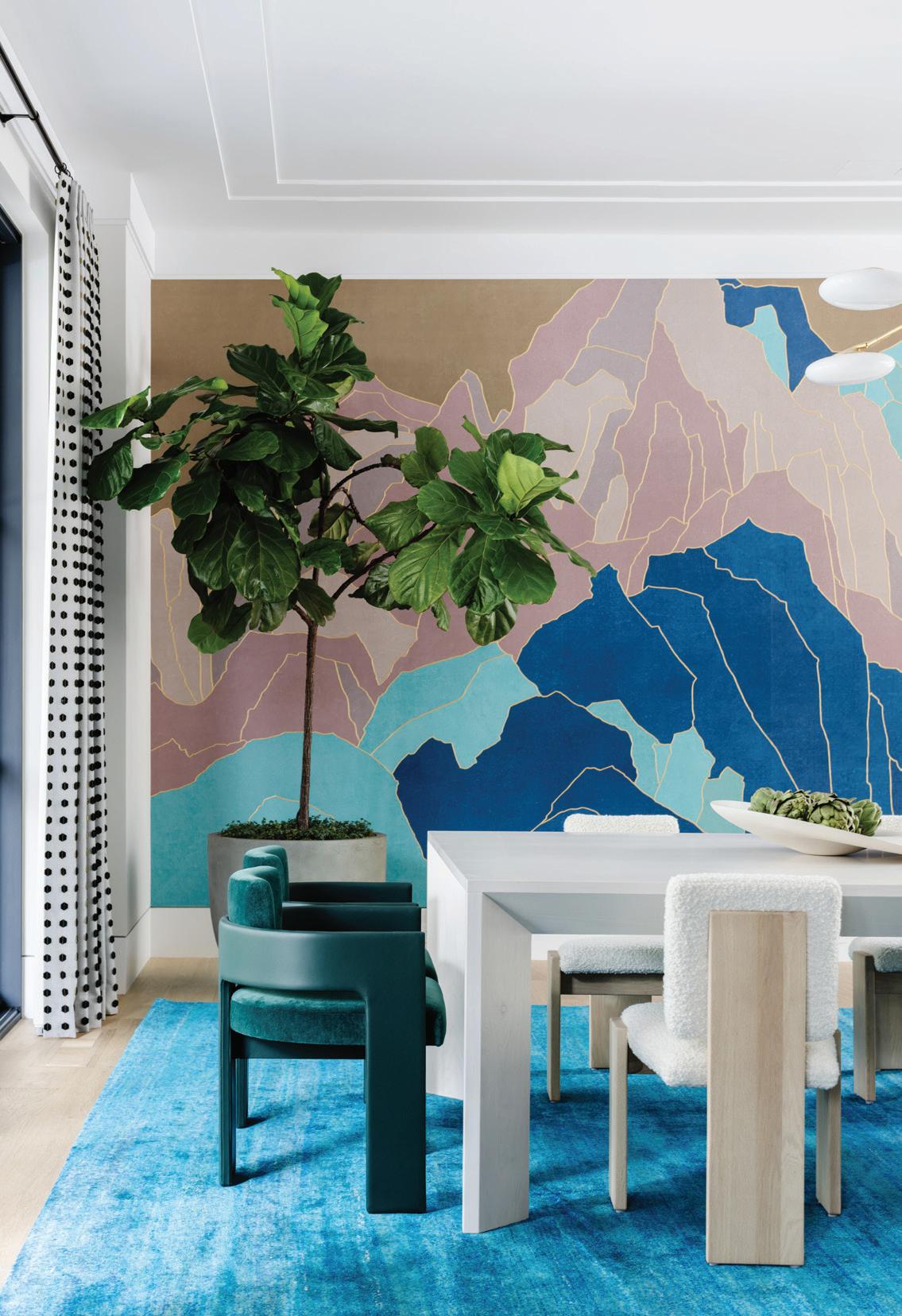And I have a strong suspicion that all the homeowners in this issue embody that flâneur spirit as well. These are not people who are worried about minutiae. They are living colorfully, and they have the matching homes to prove it. There are the musicians in Greenwich who called on husband-and-wife partners Studio DB to transform their traditional living and dining room setup into a flexible entertaining space (p. 36). Benjamin Moore’s Bali covers the dramatic doubleheight room, creating a bold backdrop for both family gatherings and impromptu performances with friends. Laura Tutun already knew her clients were going to be game for splashes of color in their pool house (p. 40). After tackling their main house, complete with blue butler’s pantry, she came back to create a summer retreat that the family loves, regardless of the season. Back in Greenwich, a wise family put their trust in the capable hands of Amy Aidinis Hirsch and Doron Sabag of SBP Homes (p. 46). The pair—who finish each other’s sentences and tag the same slabs at the stone yard—understand what it takes to deliver a beautiful house. And these pros don’t play it safe. They know that the best payoff comes from taking the big design risks, pushing for the turquoise rug, the graphic mural wallcovering, the sculptural statement staircase. Finally, our last tour is courtesy of another dream team (p. 62). Both Doug VanderHorn of VanderHorn Architects and Stephanie Woodmansee of Henry & Co. were recruited to do what they do best. For VanderHorn, it was designing a brand-new Colonial Revival home that fits right in with the neighboring historical homes. And for Woodmansee, it was covering those classic interior walls in Gucci and Gracie, among other visual delights. Her work in the powder rooms—like the unabashedly feminine one on our cover—is reason alone to see this home.