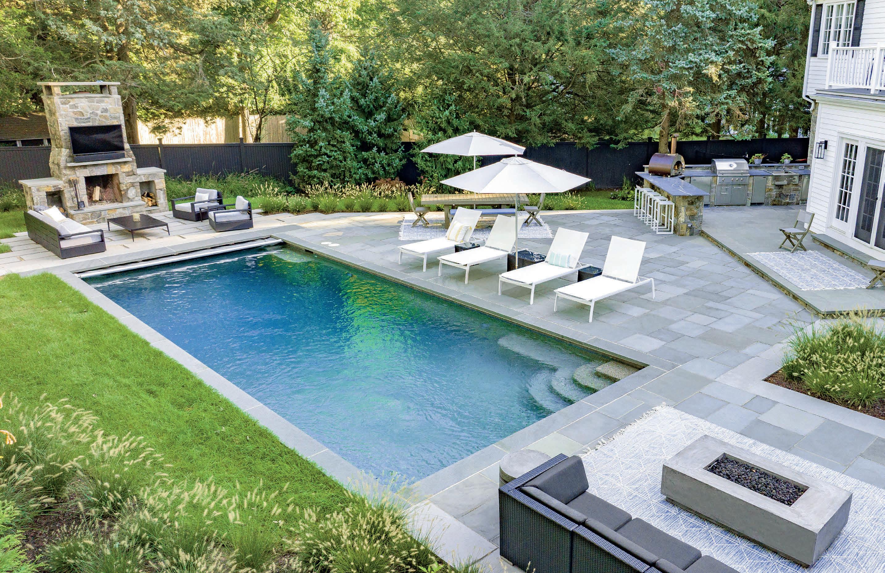 We have two sons and a dog. We raised both of them here. Right before COVID happened, we were looking at properties, and then we decided to stay. We’re both so busy. We explored putting a pool in, and when we learned we were going to be home all summer, we added one.