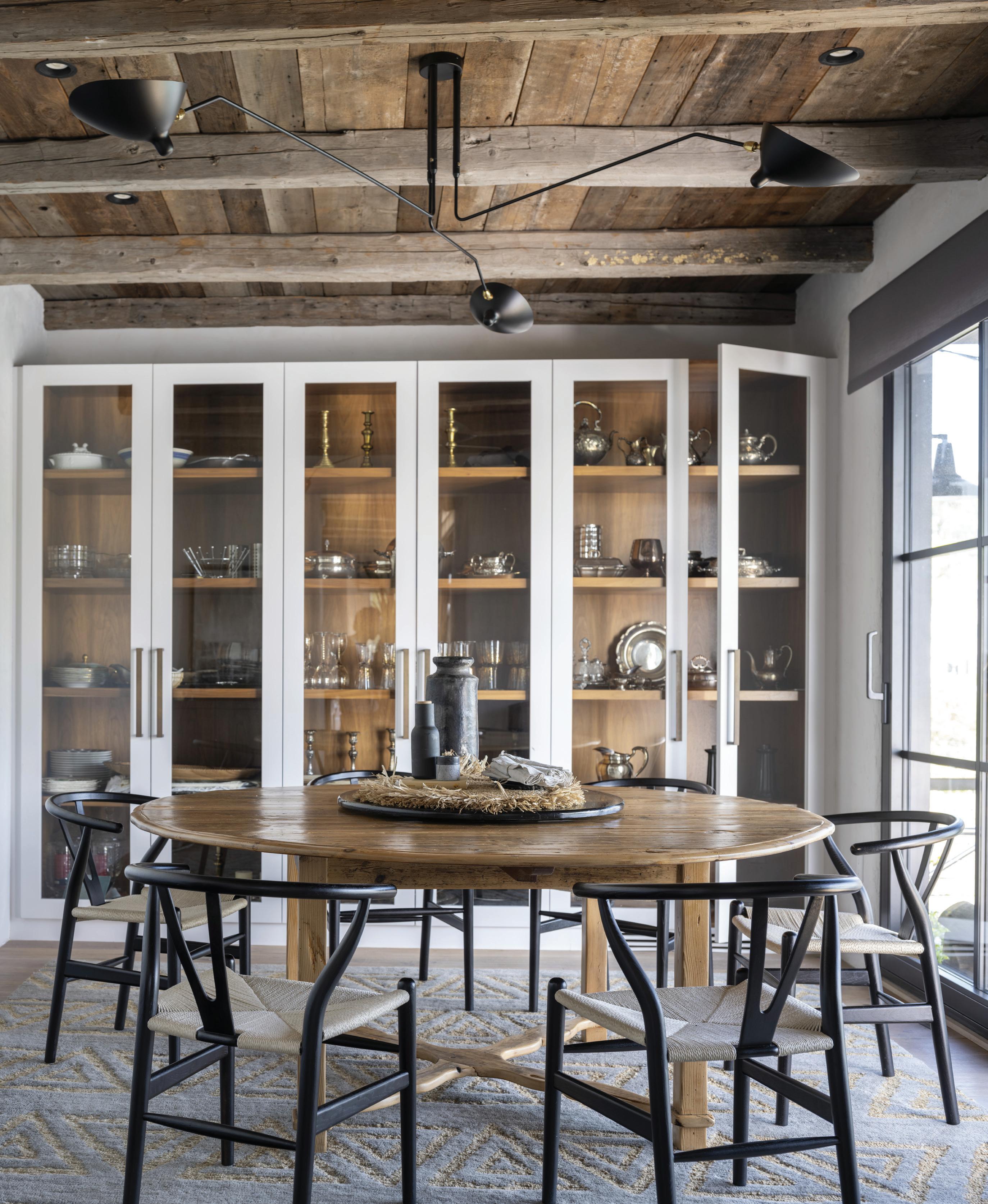 I wanted to ground that area of the house and make it a little bit more saturated so it drew you in and felt connected to the kitchen, because the kitchen has the lighter tones. But we also realized we needed wine storage. We ended up bumping out that niche, which brought in natural light with the sidelights and gave us the storage. Then I just felt like the dining room could be minimal and little bit more moody.
