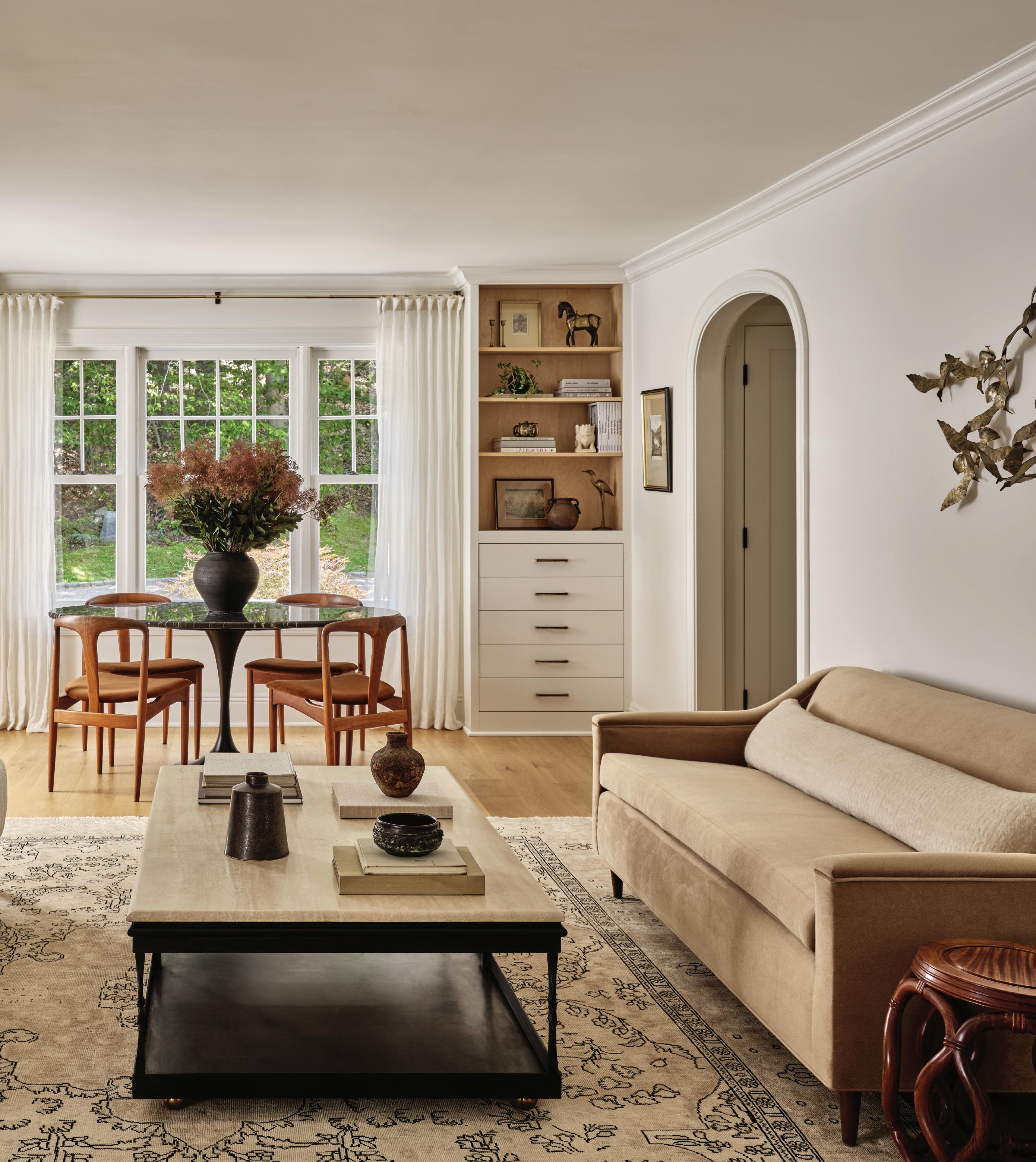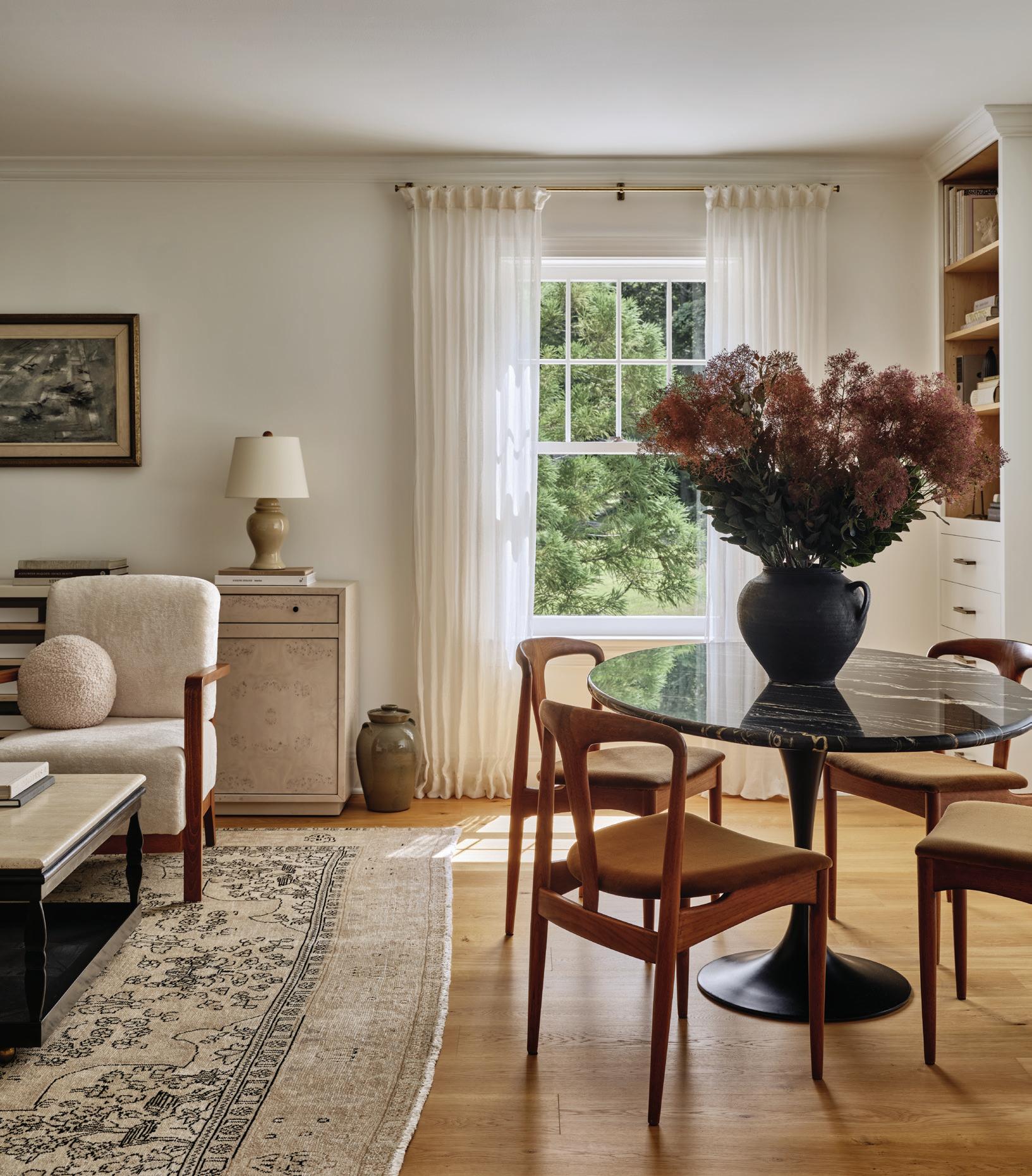 And it’s fascinating to hear what drew them in from the start. For Becca Casey, Wilton was not a town she was familiar with, but she instantly recognized the beautiful bones in the brick-wrapped house she now calls home (p. 38). The floor-to-ceiling windows were already in place, waiting for her to brighten the rest of the space, working from the ground up with white oak floors and plenty of white paint on the walls. From there, she layered a mix of textures and antiques that nod to her childhood in the English countryside, and amount to a cozy place that she loves to return to at the end of every day. It was the land—over 13 acres on the property—that Lisa Schwert Pohlschroeder of Innate Studio fell in love with (p. 48). The architect and designer was looking to settle her family, which includes her husband, young sons, her mother and, as she describes it, a “whole menagerie” of animals. The grounds were private and spacious—and included a necessary barn—but the house would prove a challenge. Coming from older homes, she had to adjust the way she approached the ’90s-built spaces, strategically reconfiguring rooms and adding character with custom built-ins. Finally, we peek into the world of an artist-in-residence, at Kristin Fine’s contemporary coastal retreat (p. 60). This was a place to land after Fine’s plans to travel the world were cut short by COVID. Wasting no time, she assembled a team to transform her new home into a space that could house her collections of treasures and art, and easily accommodate her large family and frequent visitors. The result is a haven that served as both a comfortable refuge and a calming canvas that reflects her refined taste.