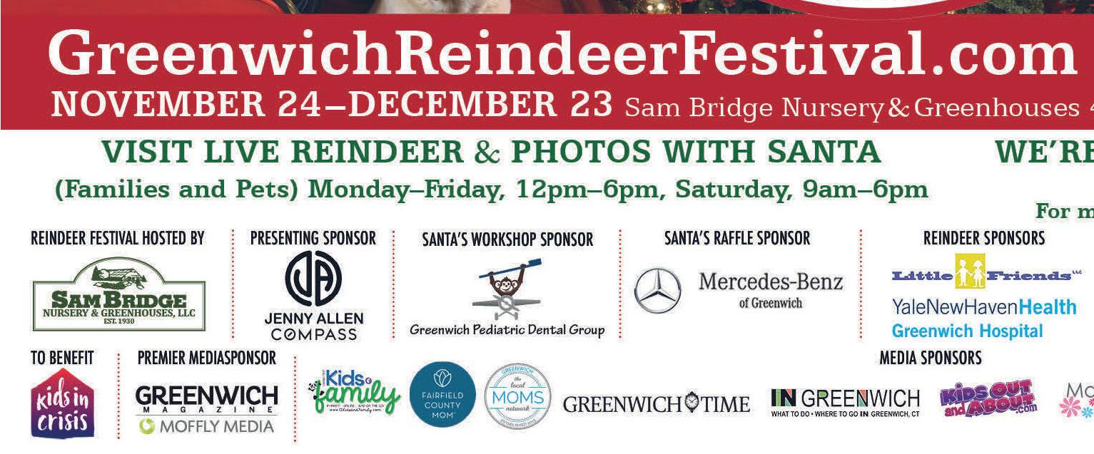 Santa and his three reindeer return to Greenwich for the seventeenth annual Greenwich Reindeer Festival & Santa’s Workshop presented by Jenny Allen & Kristen Studwell at Compass Real Estate. The “North Pole on North Street” will be held at Sam Bridge Nursery & Greenhouses (437 North Street) until Wednesday, December 24. Visitors can have their photo taken with Santa, meet the reindeer and enjoy Santa’s Workshop sponsored by Greenwich Pediatric Dental Group. A portion of all photos with Santa will be donated to Kids in Crisis. Dogs (on leashes) can also have their photo taken with the big guy. greenwichreindeerfestival.com »