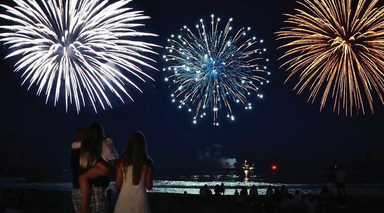 above: Fireworks dazzle at the annual Independence Day Beach Ball.
