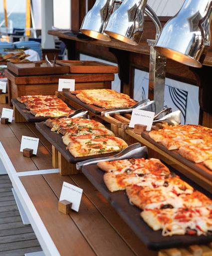 Experience the flavorful cuisine and vibrant atmosphere of the Mediterranean coast. Indulge in Mediterraneaninspired starters and salads, summertime soups like gazpacho with shrimp, and entrées such as Turkish chicken, fresh grilled swordfish, shawarma and more. Plus an impressive dessert selection, and all with complimentary house wine, beer, and live music. 6:30 p.m. – 9 p.m.; $110/ adult*; $55/child ages 4-12*; $25/child ages 3 and under*